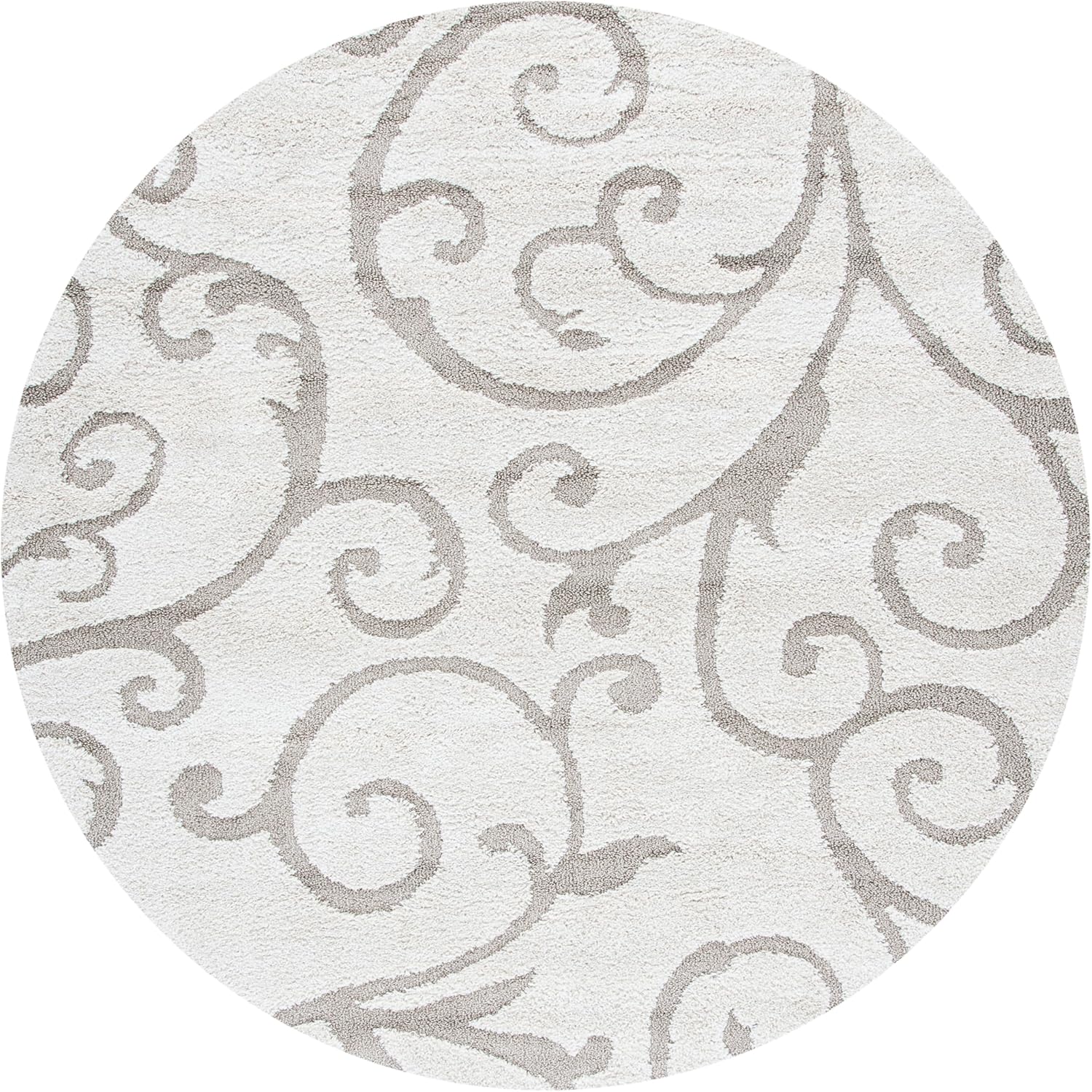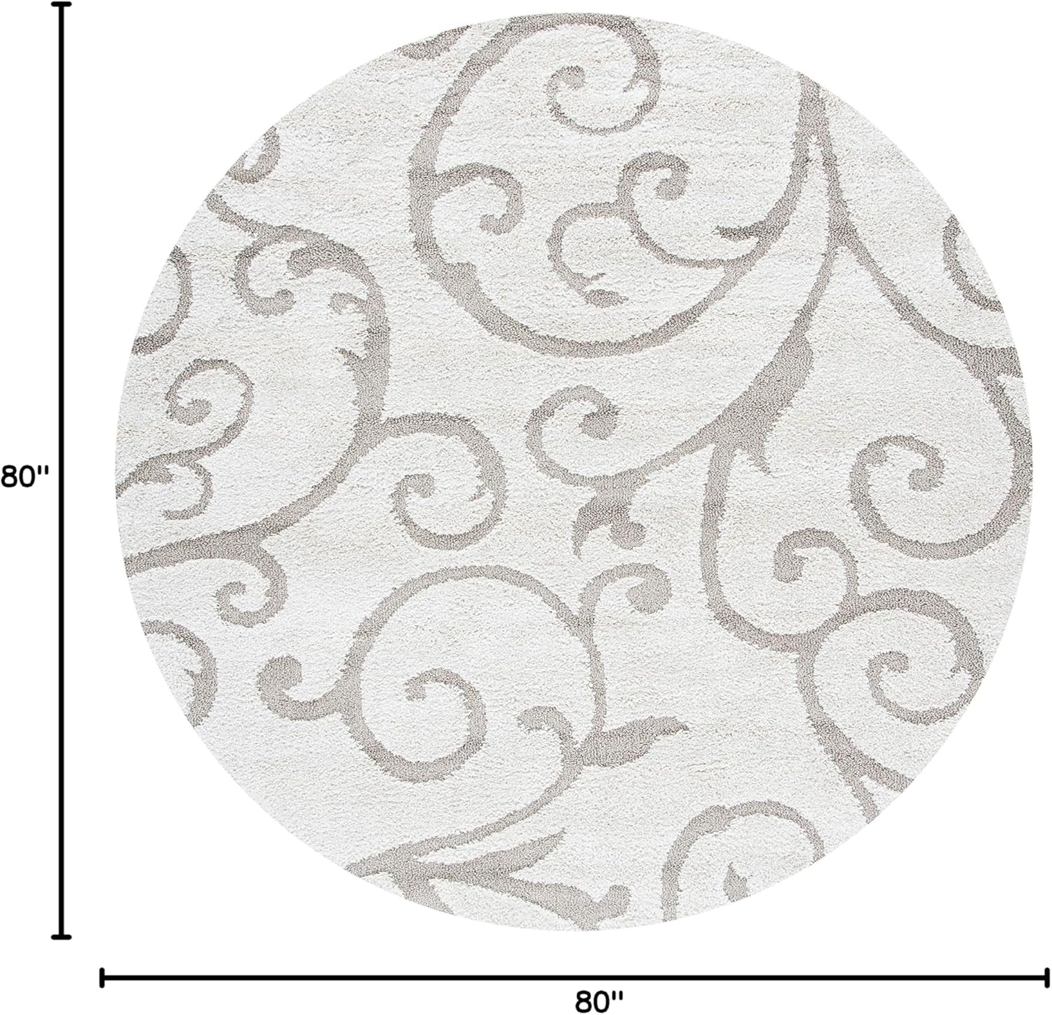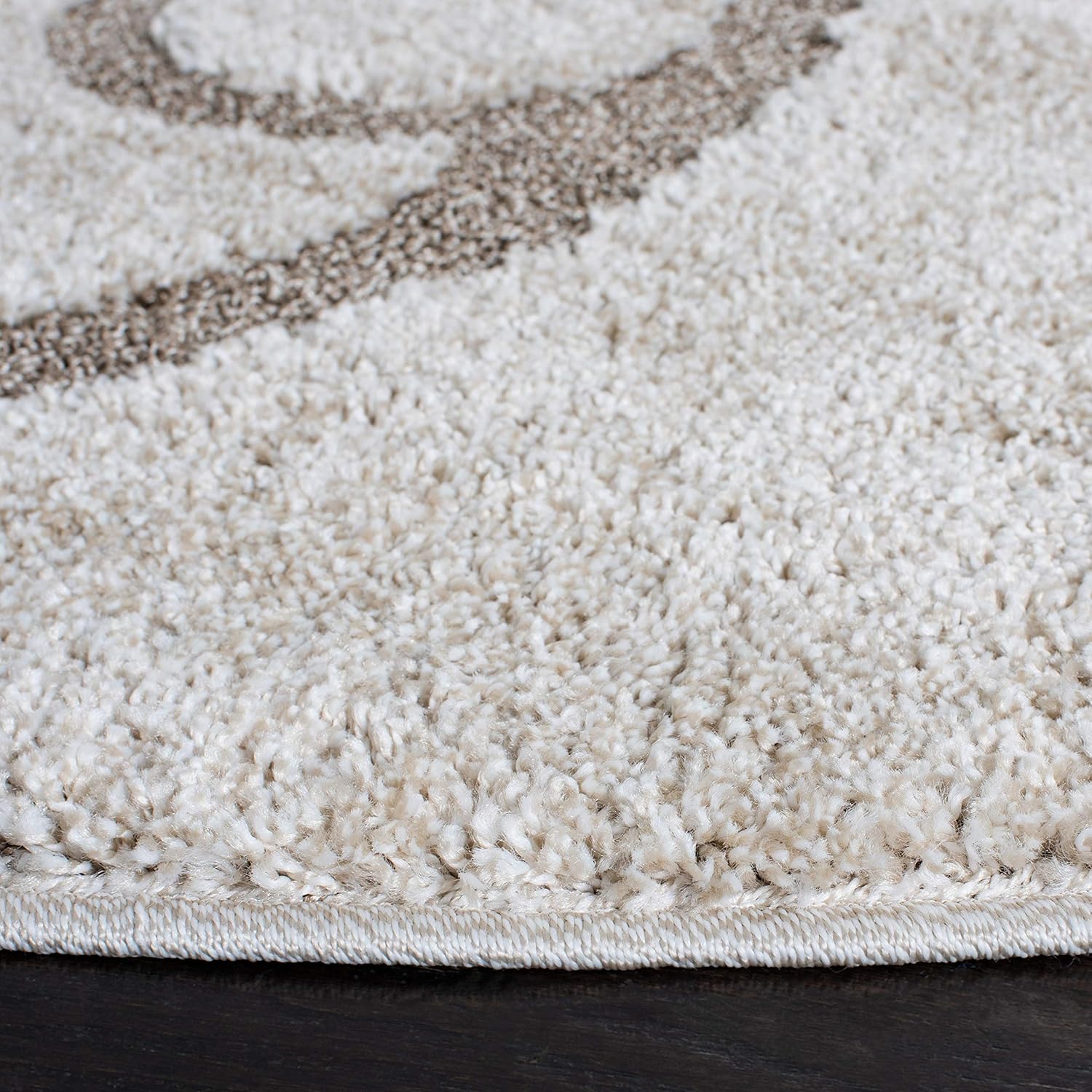 SAFAVIEH Florida Shag Collection Area Rug - 6'7" Round, Ivory & Beige, Scroll Design, Non-Shedding & Easy Care, 1.2-inch Thick Ideal for High Traffic Areas in Living Room, Bedroom (SG455-13LT)