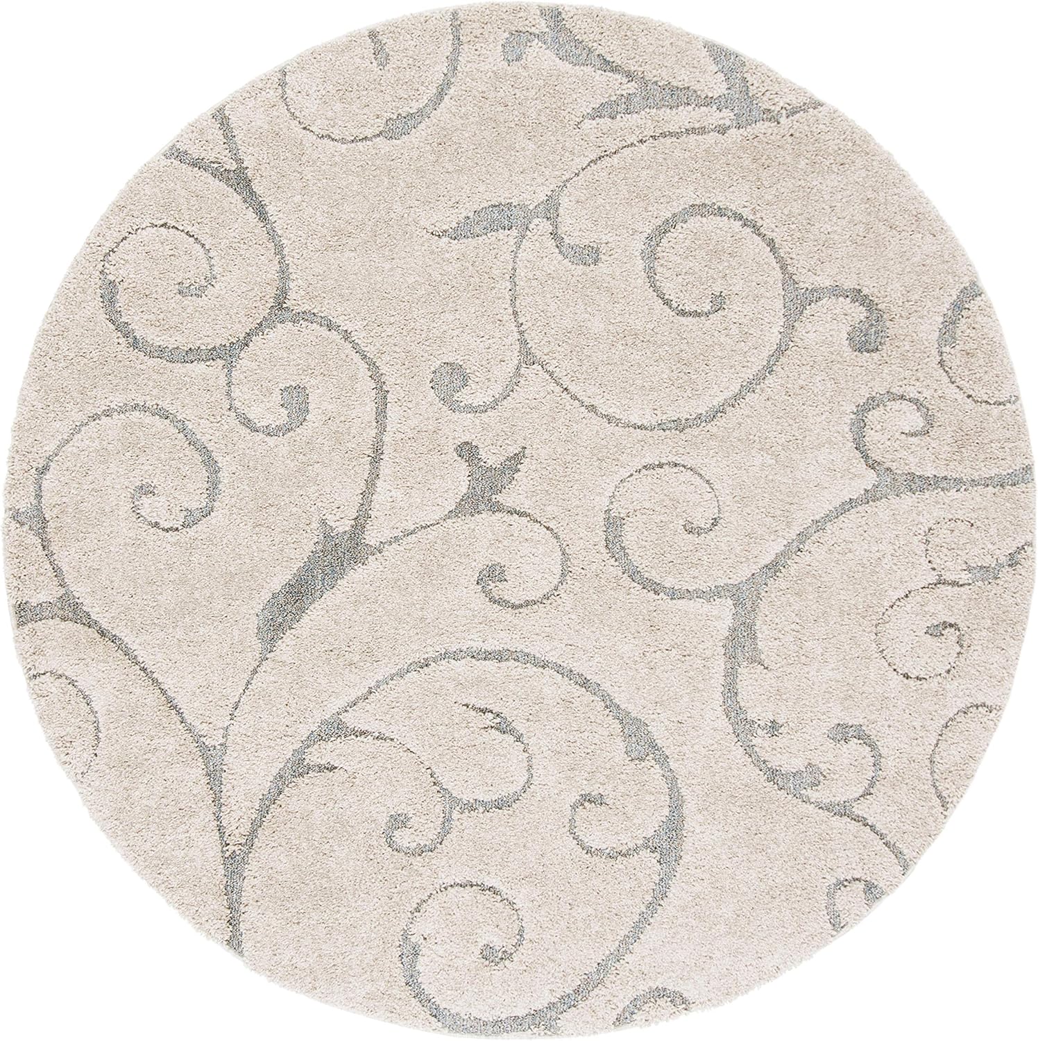 SAFAVIEH Florida Shag Collection 8' Round Beige/Blue Grey SG455 Scrolling Vine Graceful Swirl Textured Non-Shedding Living Room Bedroom 1.2-inch Thick Area Rug