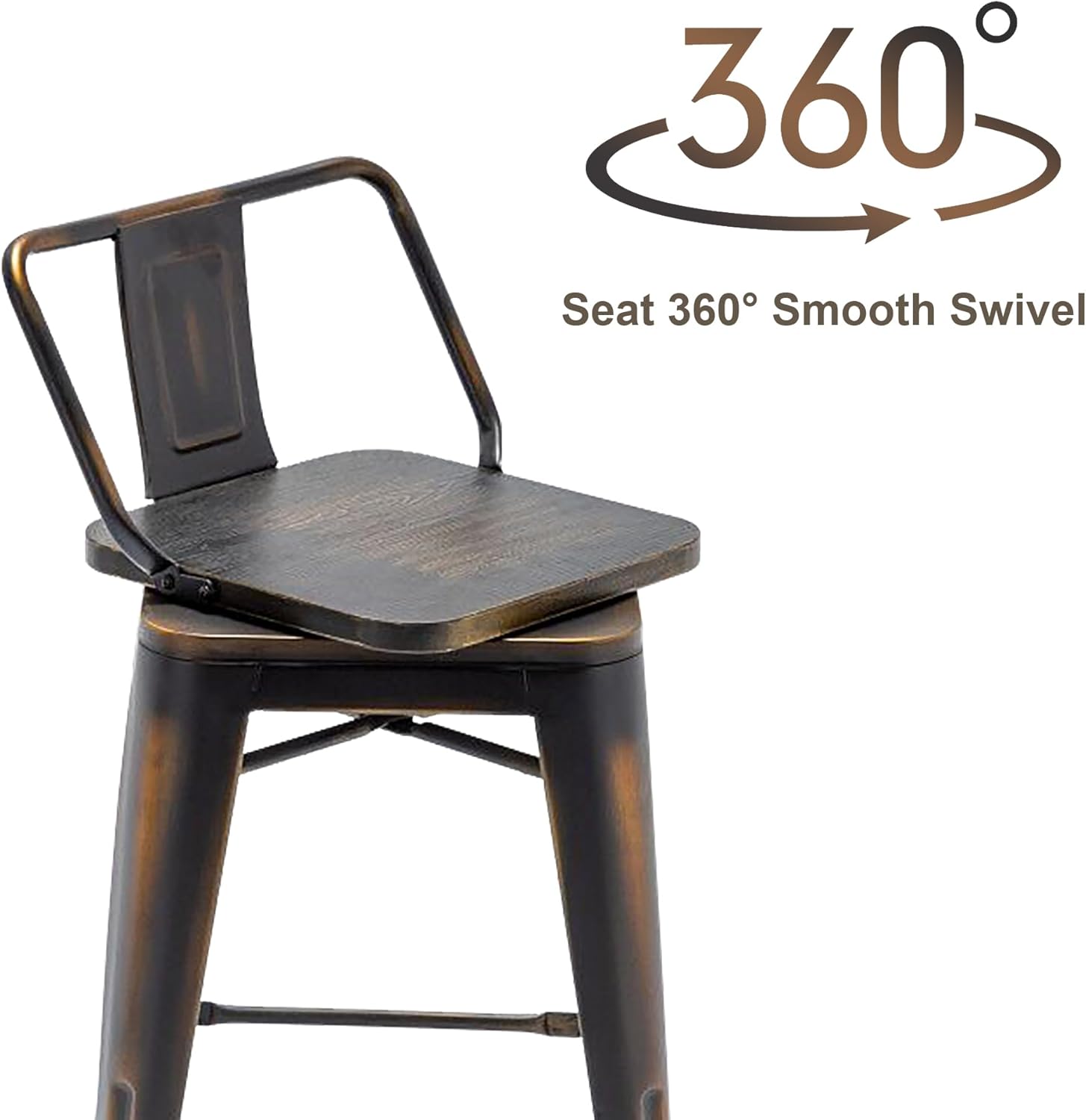 30 Inch Swivel Bar Stools Set of 4 with Backs Counter Height Industrial Metal Barstools Island Bar Chairs for Home Kitchen Dining Room (Swivel 30 inch, Distressed Gold Wooden)