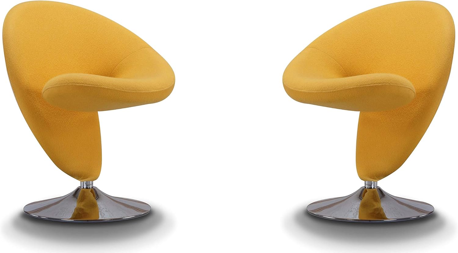 Manhattan Comfort Curl Swivel Accent Chair with 360° Turn, Fully Assembled, Upholstered in Wool Blend, Modern Ergonomic Design with Polished Chrome Base, Living Room & Office, Set of 1, Yellow