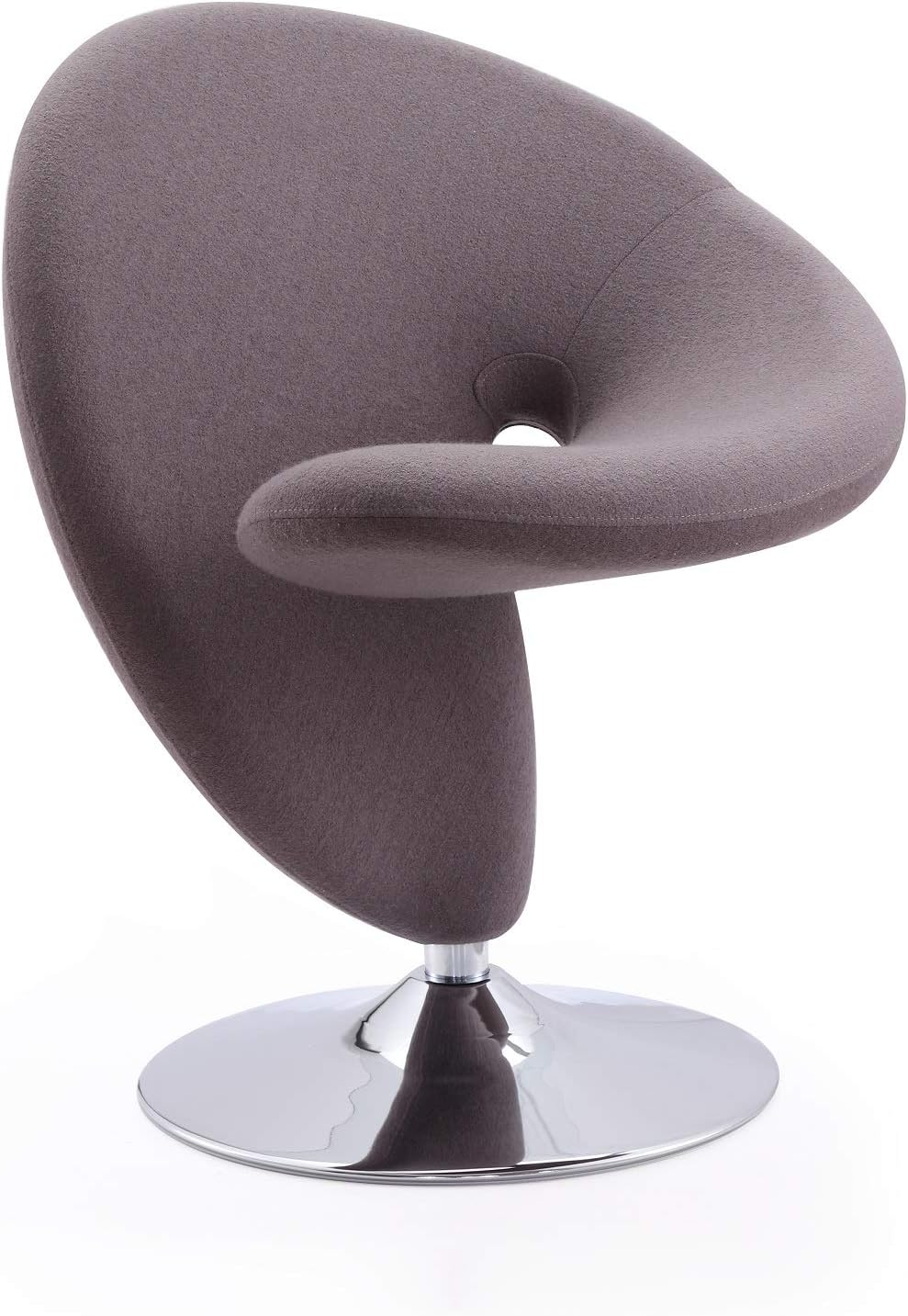 Manhattan Comfort Curl Swivel Accent Chair Set of 2 with 360° Turn, Fully Assembled, Upholstered in Wool Blend, Modern Ergonomic Design with Polished Chrome Base, Living Room & Office, Set of 1, Grey