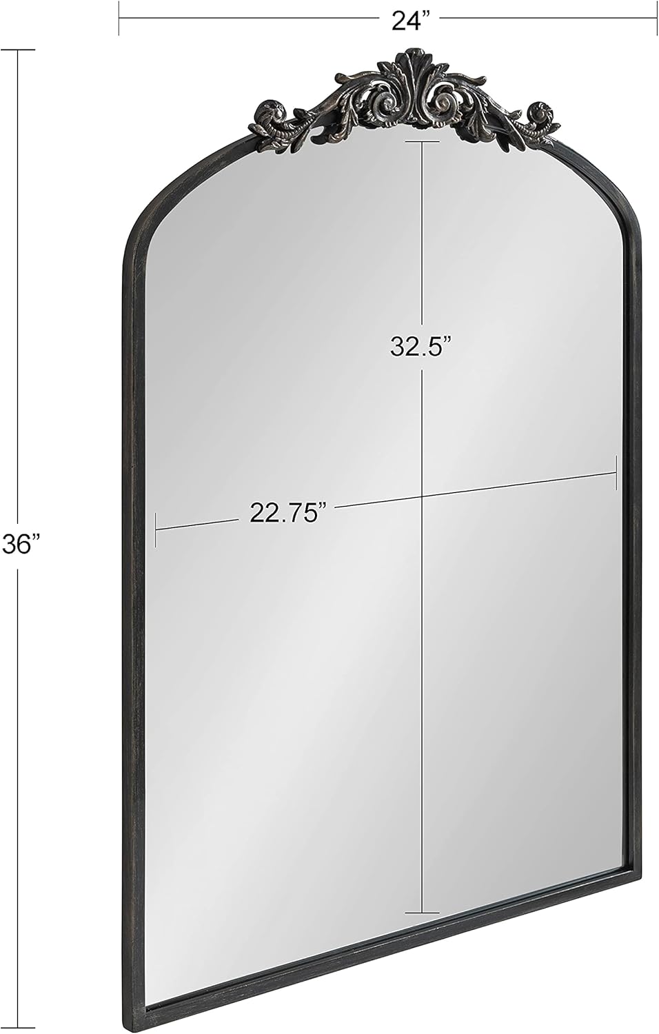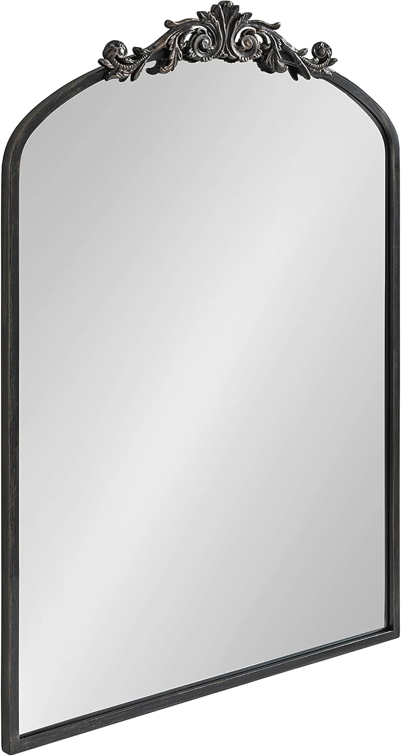 Kate and Laurel Arendahl Traditional Arch Mirror, 24 x 36, Antique Black, Baroque Inspired Wall Decor