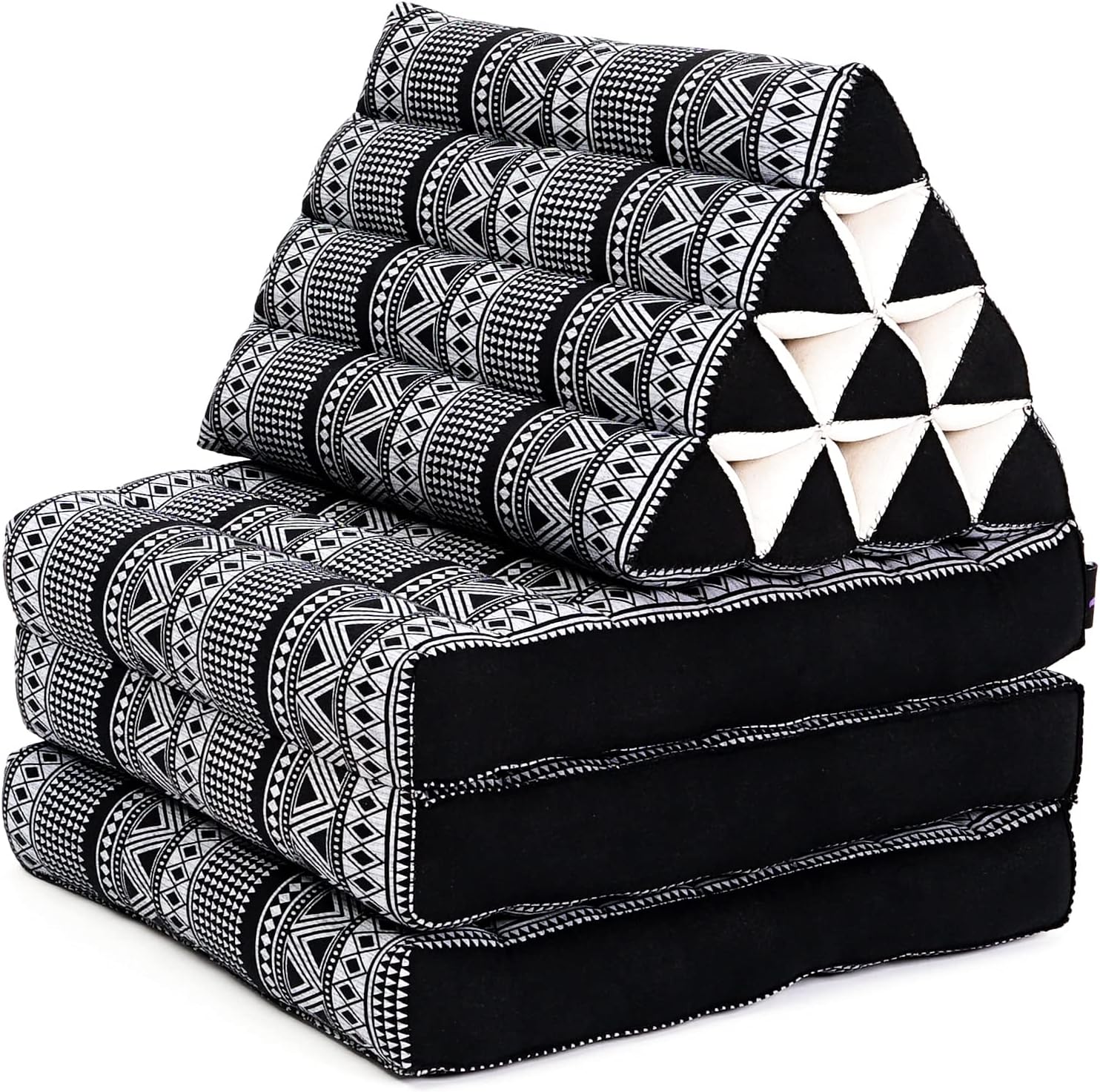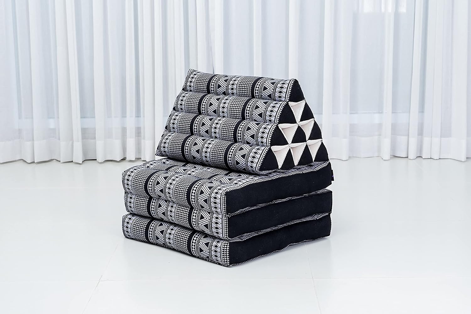 Leewadee - Comfortable Japanese Floor Mattress - Thai Floor Bed with Triangle Cushion - Futon Mattress - Thai Massage Mat, 67 x 21 inches, Black White, Kapok Filling