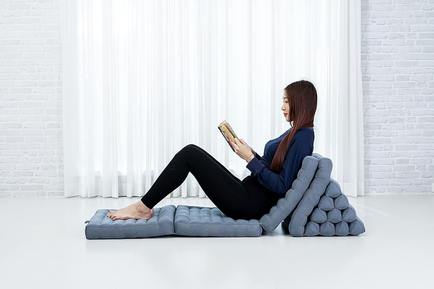 - 4 fold Mat with integrated Thai triangle pillow. Ideal for reading, watching TV, gaming, or as a daybed. This floor pillow lounger doubles as a Japanese futon floor mattress or thai massage mat