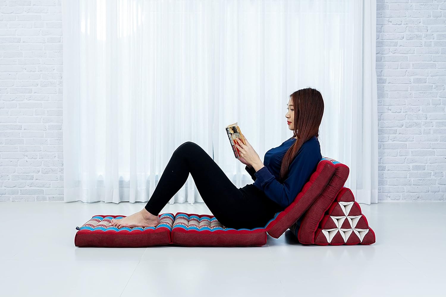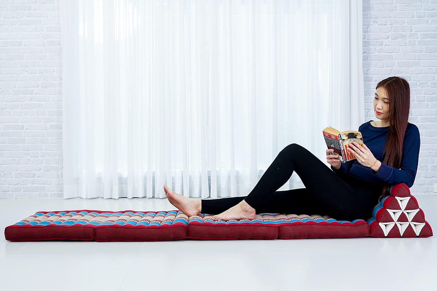 - 4 fold Mat with integrated Thai triangle pillow. Ideal for reading, watching TV, gaming, or as a daybed. This floor pillow lounger doubles as a Japanese futon floor mattress or thai massage mat