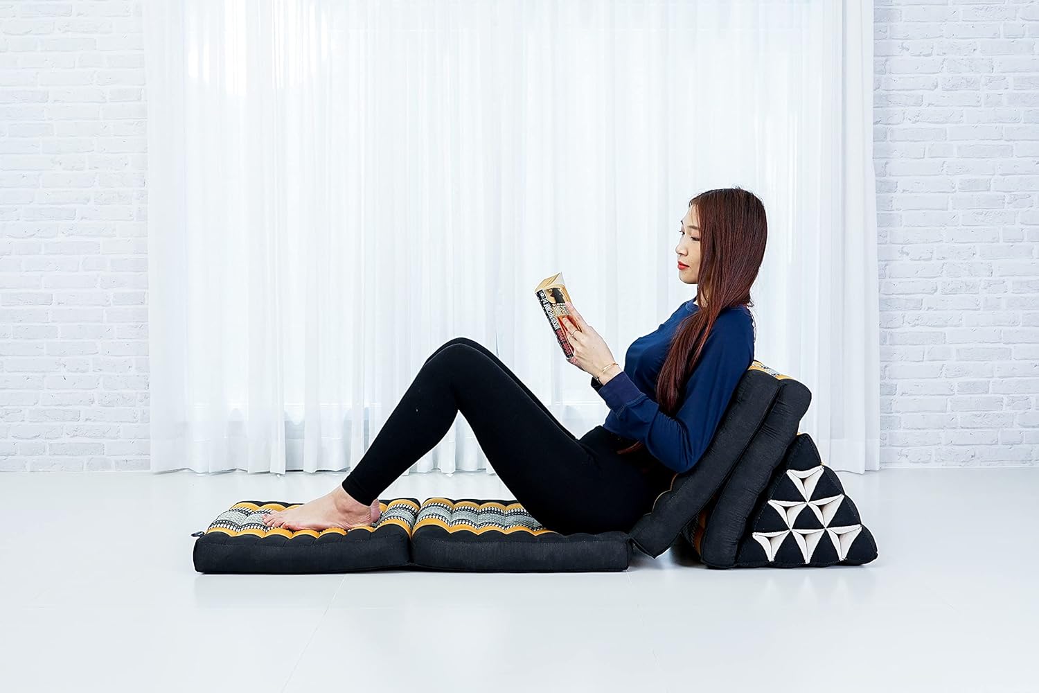 - 4 fold Mat with integrated Thai triangle pillow. Ideal for reading, watching TV, gaming, or as a daybed. This floor pillow lounger doubles as a Japanese futon floor mattress or thai massage mat