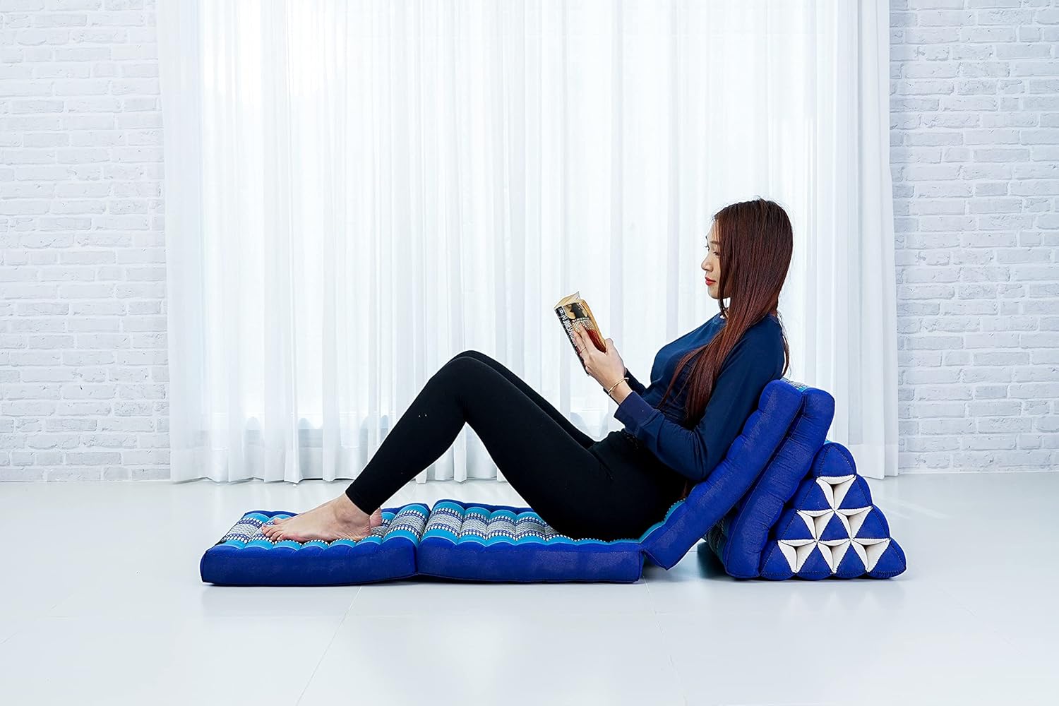 - 4 fold Mat with integrated Thai triangle pillow. Ideal for reading, watching TV, gaming, or as a daybed. This floor pillow lounger doubles as a Japanese futon floor mattress or thai massage mat