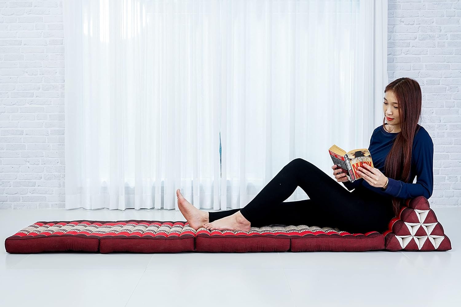 Leewadee 4-Fold Mat with Triangle Cushion – Firm TV Pillow, Foldable Mattress with Cushion Made of Eco-Friendly Kapok, 89 x 20 inches, red