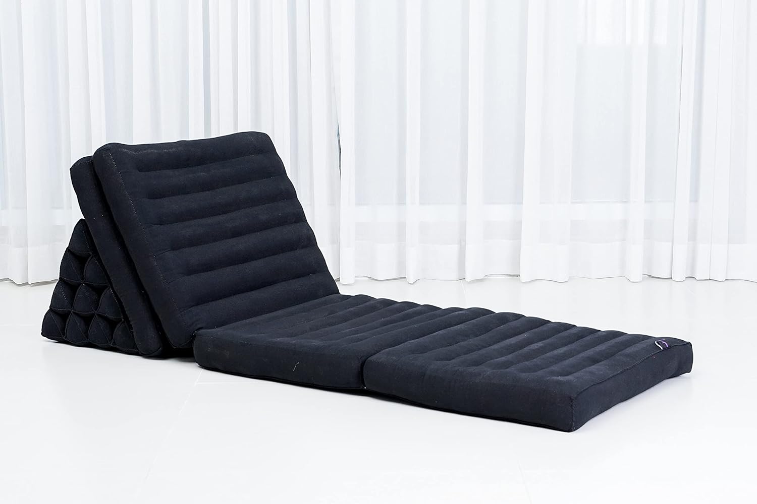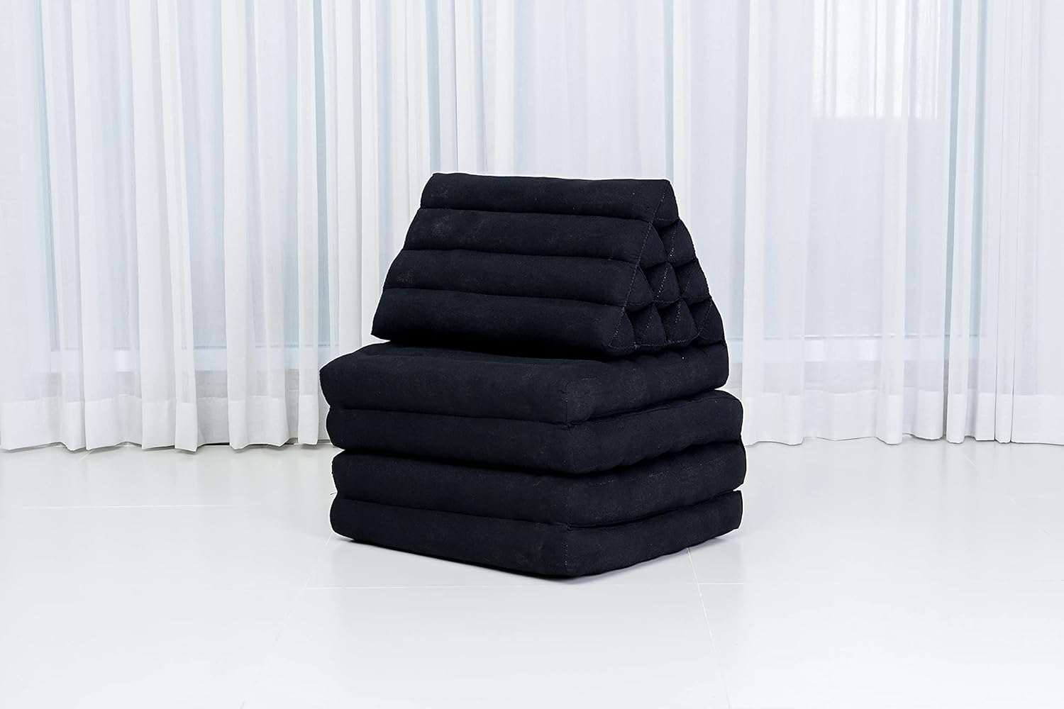 Leewadee Comfortable Japanese Floor Mattress - Thai Floor Bed with Triangle Cushion - Futon Mattress - XL Extra Long Thai Massage Mat, 89 x 20 inches, Black, Kapok Filling