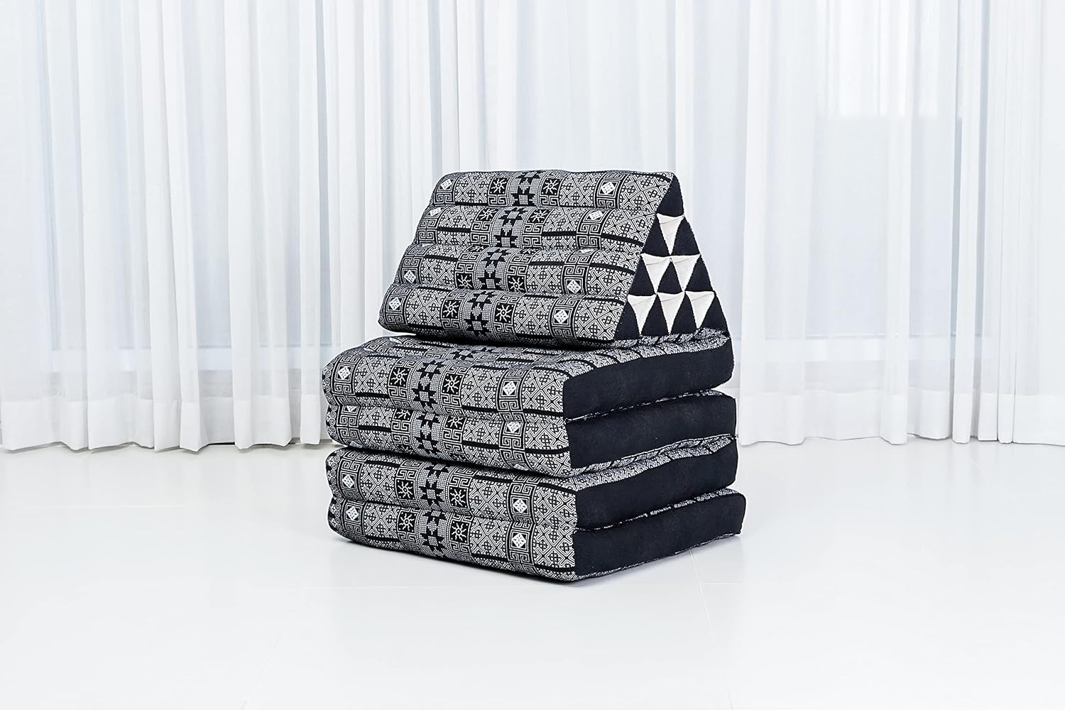 Leewadee Comfortable Japanese Floor Mattress - Thai Floor Bed with Triangle Cushion - Futon Mattress - XL Extra Long Thai Massage Mat, 89 x 20 inches, Black, Kapok Filling