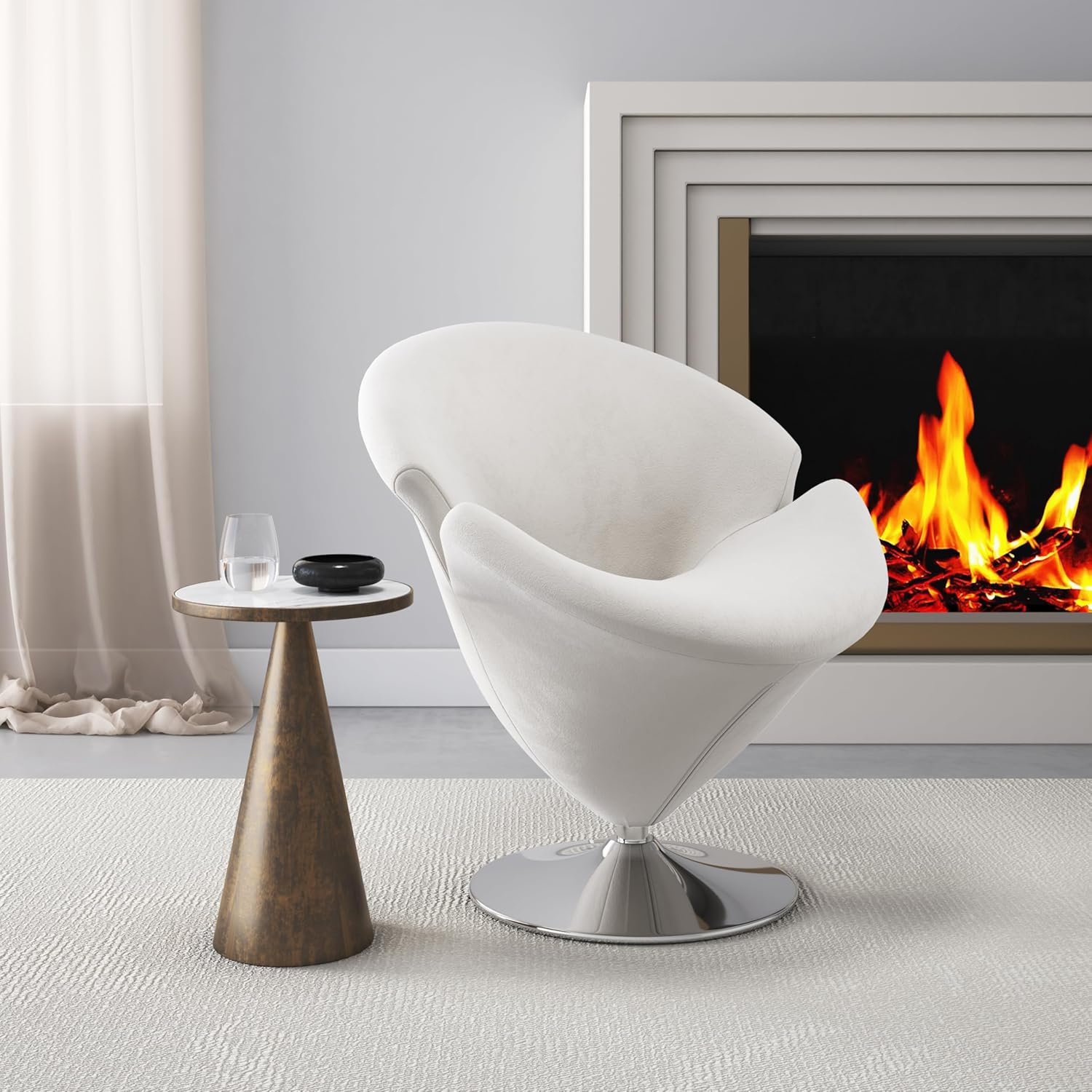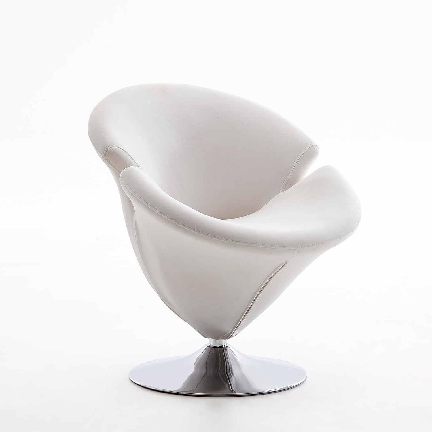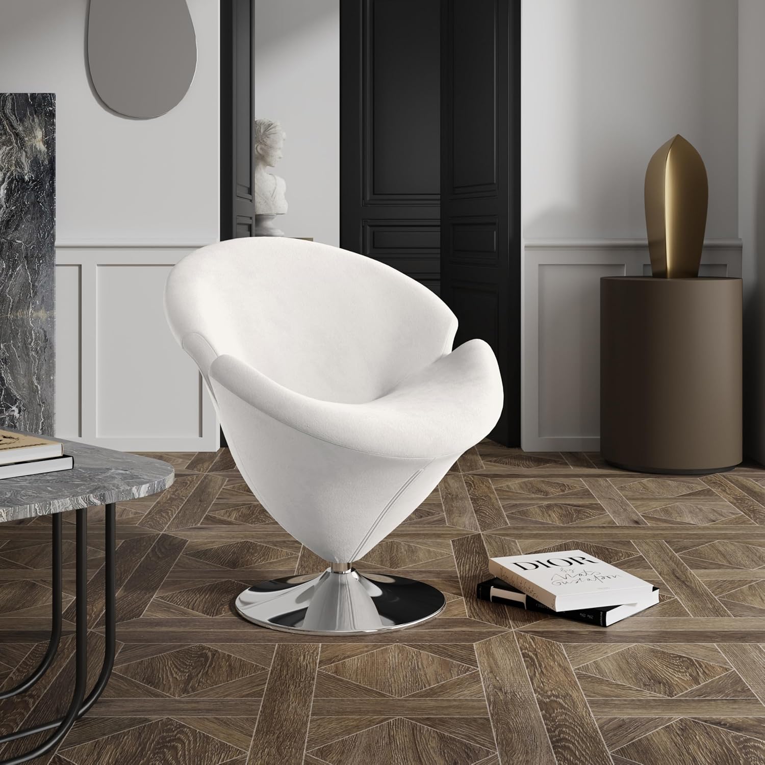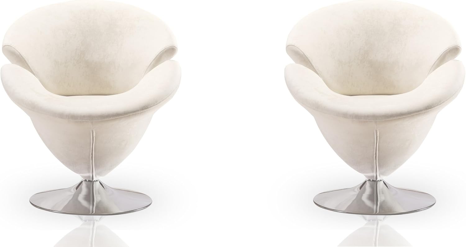 Manhattan Comfort Tulip Swivel Accent Chair Set of 2 with 360° Turn, Modern Flower Inspired Design, Soft Velvet Upholstery, Polished Chrome Base, No Assembly Required, 300 Lbs Capacity, White
