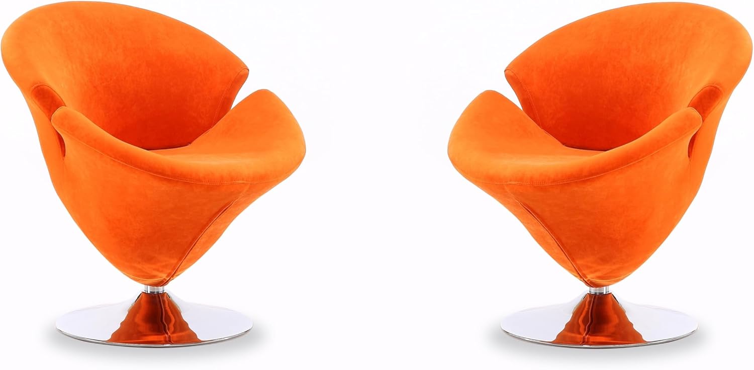 Manhattan Comfort Tulip Swivel Accent Chair Set of 2 with 360° Turn, Modern Flower Inspired Design, Soft Velvet Upholstery, Polished Chrome Base, No Assembly Required, 300 Lbs Capacity, Orange