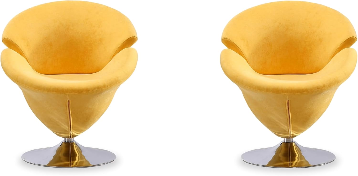 Manhattan Comfort Tulip Swivel Accent Chair Set of 2 with 360° Turn, Modern Flower Inspired Design, Soft Velvet Upholstery, Polished Chrome Base, No Assembly Required, 300 Lbs Capacity, Yellow