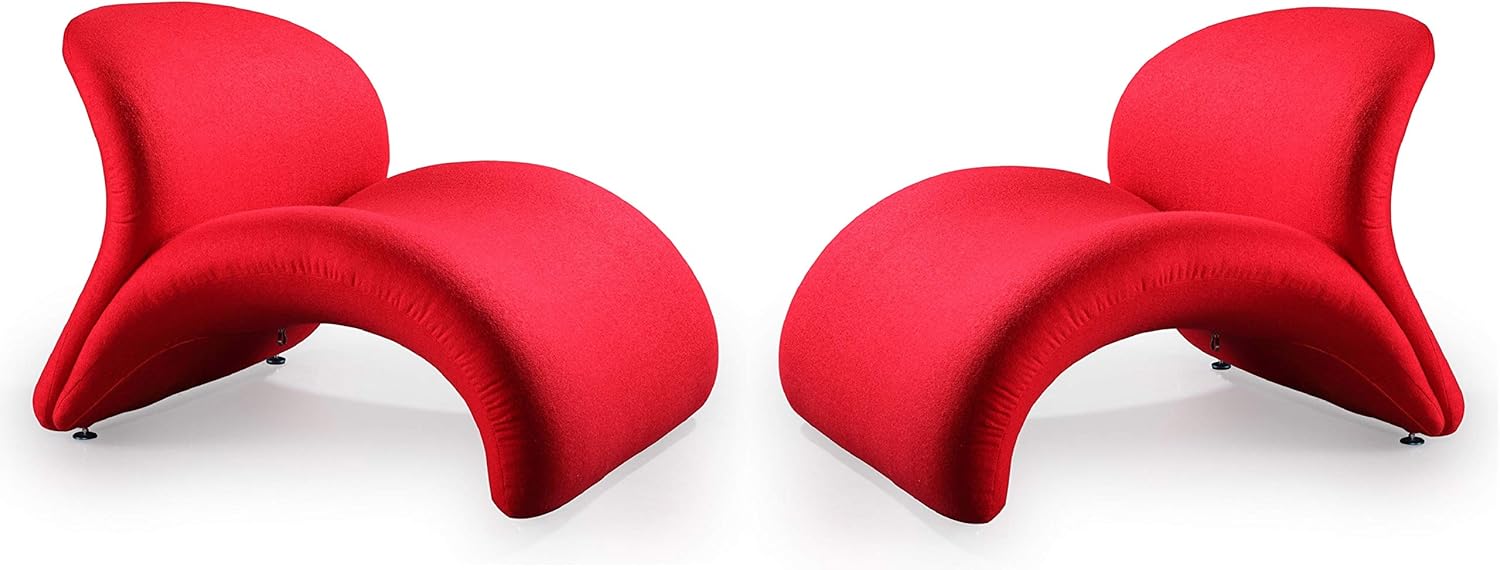 Manhattan Comfort Rosebud Modern Accent Chair Set of 2 in Wool Blend, Ideal for Pop Living Room Usage, Abstract Lounge Seat with Metal Legs, High-Density Foam, Fully Assembled, 300 Lbs Capacity, Red