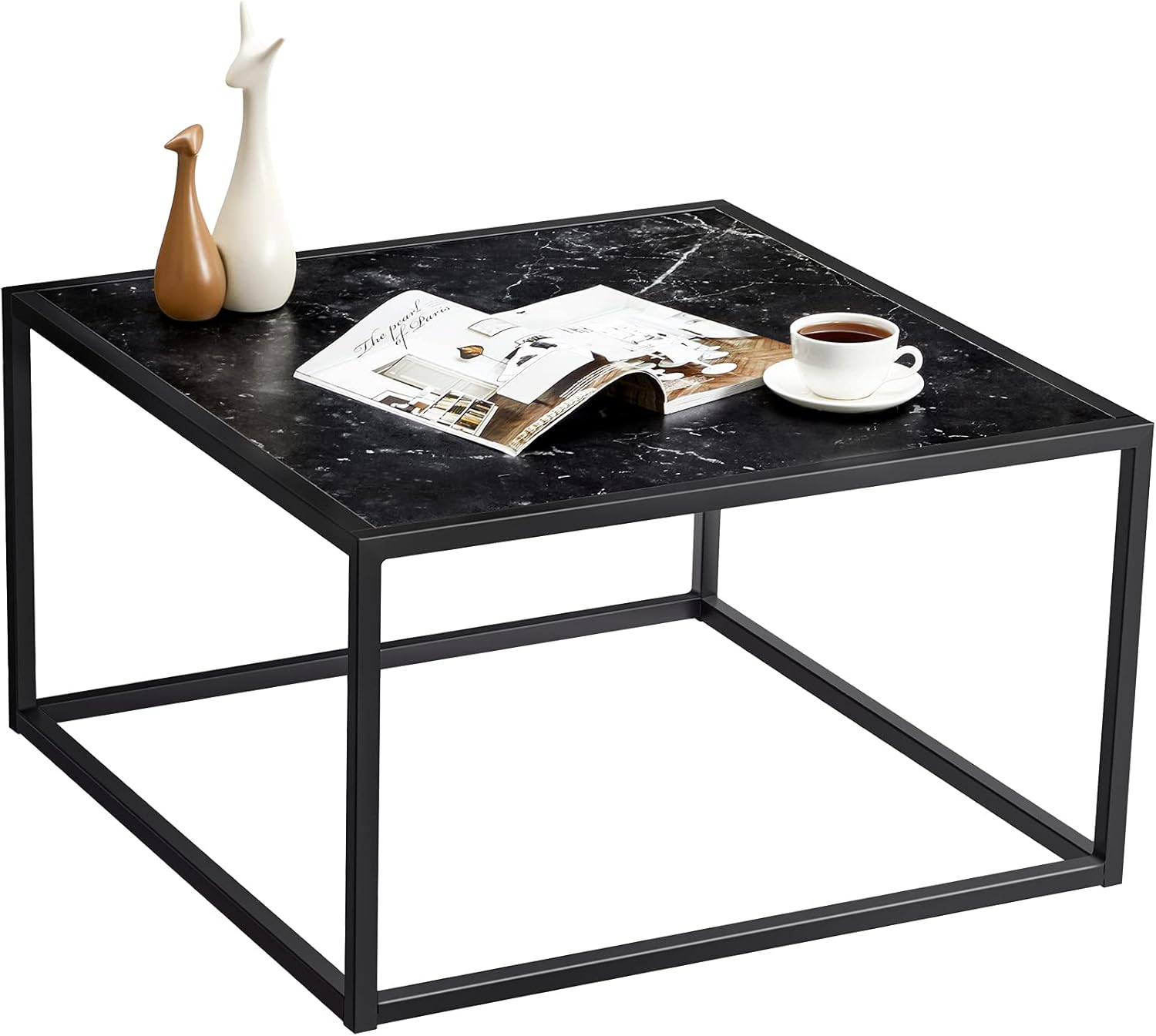 SAYGOER Black Coffee Table Small Square Coffee Table Simple Modern Center Table for Living Room Home Office 27.6 * 27.6 * 15.7Inch Easy Assembly, Black Faux Marble