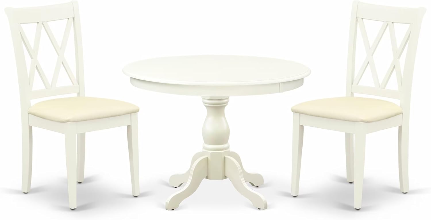 East West Furniture HBCL3-LWH-C 3 Piece Dining Table Set for Small Spaces Contains a Round Dining Room Table with Pedestal and 2 Linen Fabric Upholstered Chairs, 42x42 Inch, Linen White