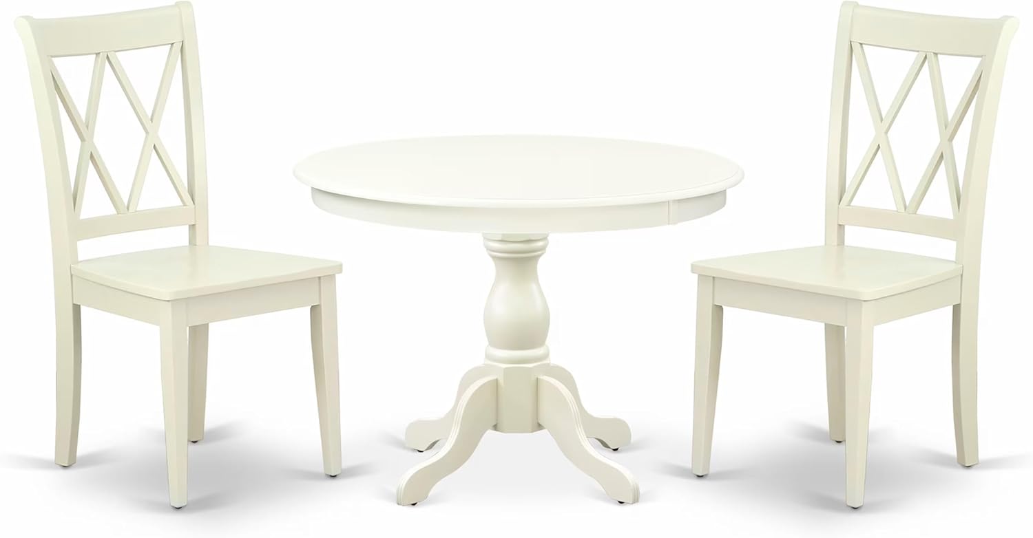 East West Furniture HBCL3-LWH-W 3 Piece Dinette Set for Small Spaces Contains a Round Dining Table with Pedestal and 2 Dining Chairs, 42x42 Inch, Linen White