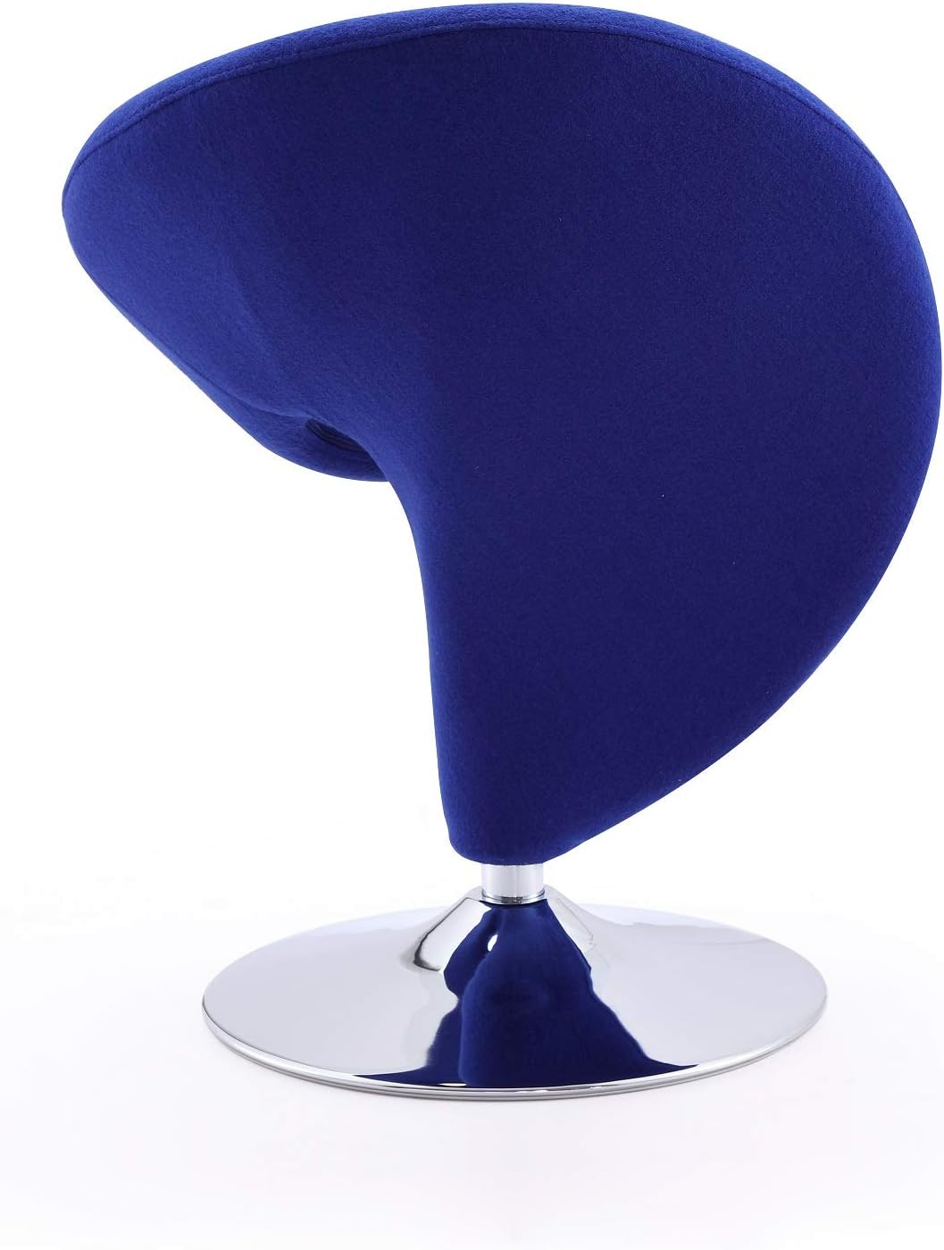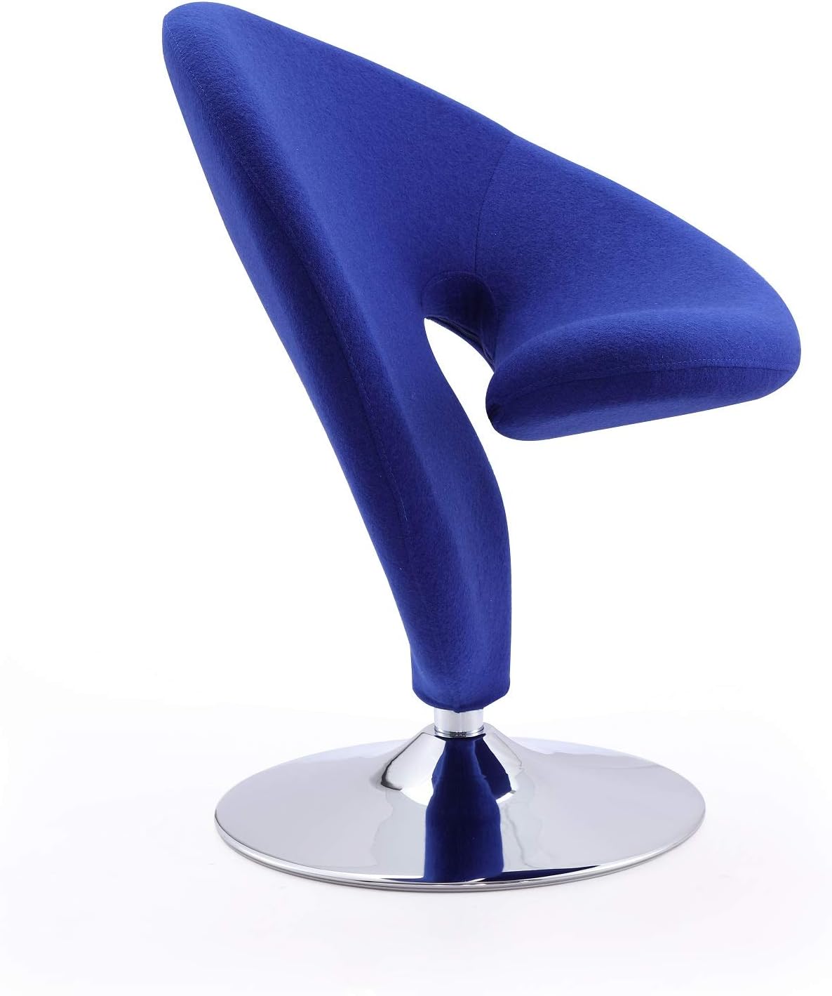 Manhattan Comfort Curl Mid Century Modern Wool Blend Upholstered Living Room Swivel Accent Chair with Chrome Metal Base, Set of 2, Blue