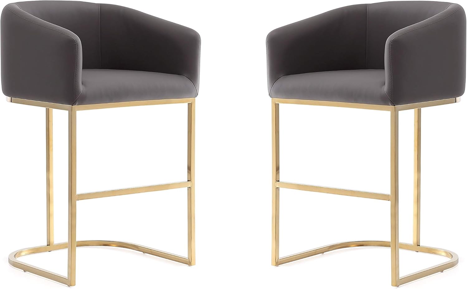 Manhattan Comfort Louvre 26 Inch Mid Century Modern Counter Height Bar Stools - Elegant Faux Leather Padded Seat, Stainless Steel Base with Footrest, Fully Assembled Barstools, Set of 2, Grey