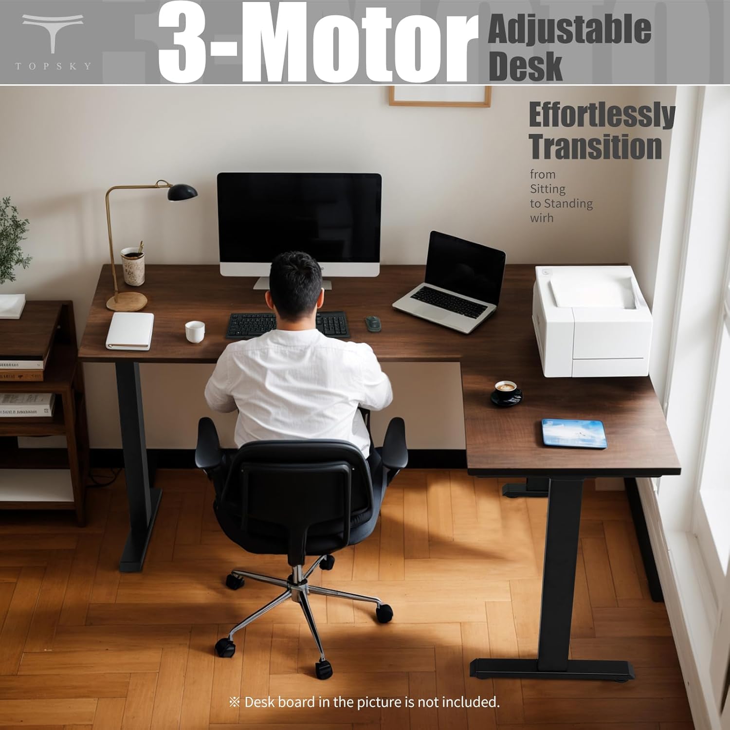 - TOPSKY DF03.01 : This triple-motor electric desk is ideal for you to set up the comfortable positions and create your own desk space. It is quick and easy to adjust the height and switch sit-stand posture. This desk liberates you from unhealthy working habit and enhances your working efficiency.