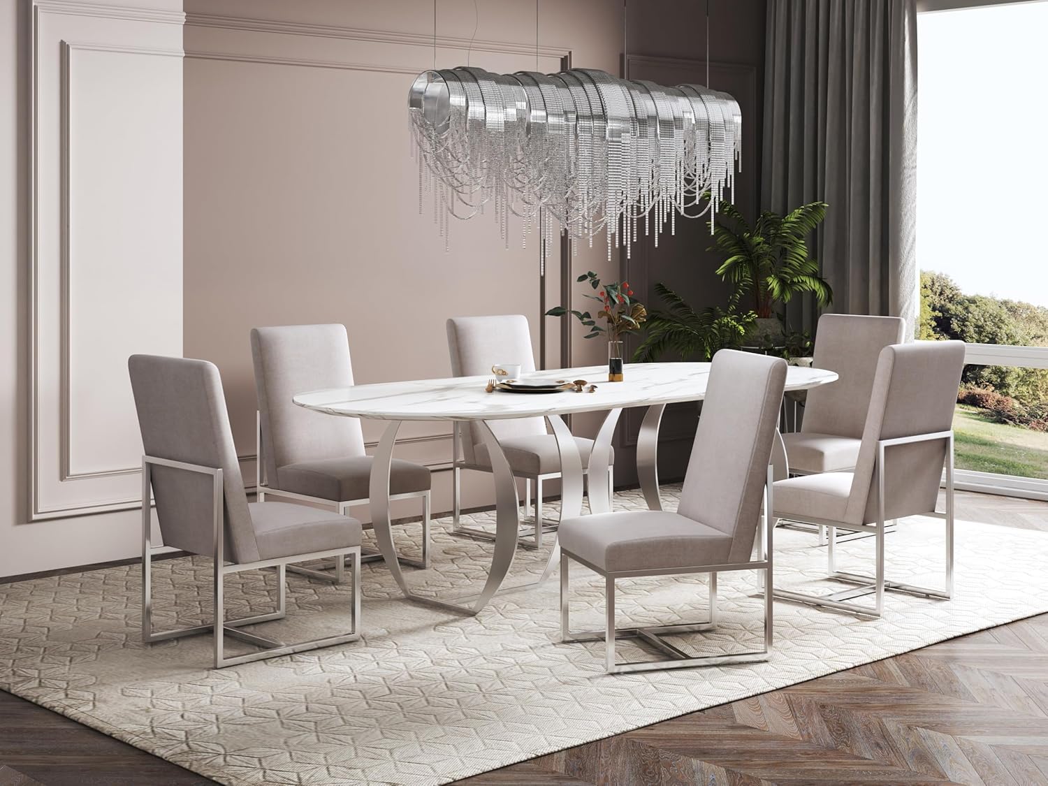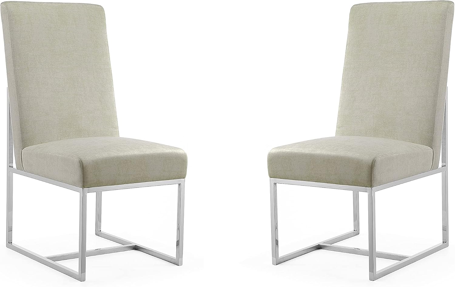 Manhattan Comfort Element Modern Velvet Dining Chairs, High Density Foam, Chrome Finish Stainless Steel Frame, High-Back, Fully Assembled Industrial Chic Accent Furniture, Set of 2, Champagne