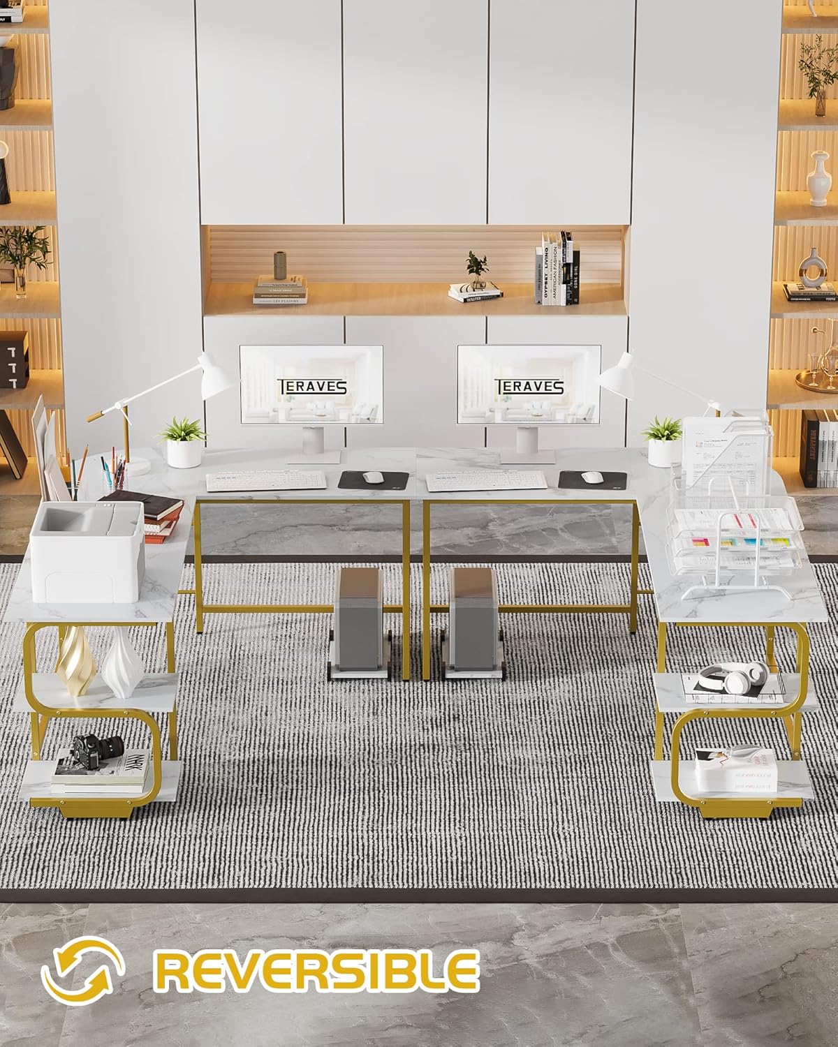 Teraves Reversible L Shaped Desk with Large Surface, 69 Inch Sturdy Corner Desk with Storage Shelves, Premium Office Computer Desk Workstation for Home Office Gaming