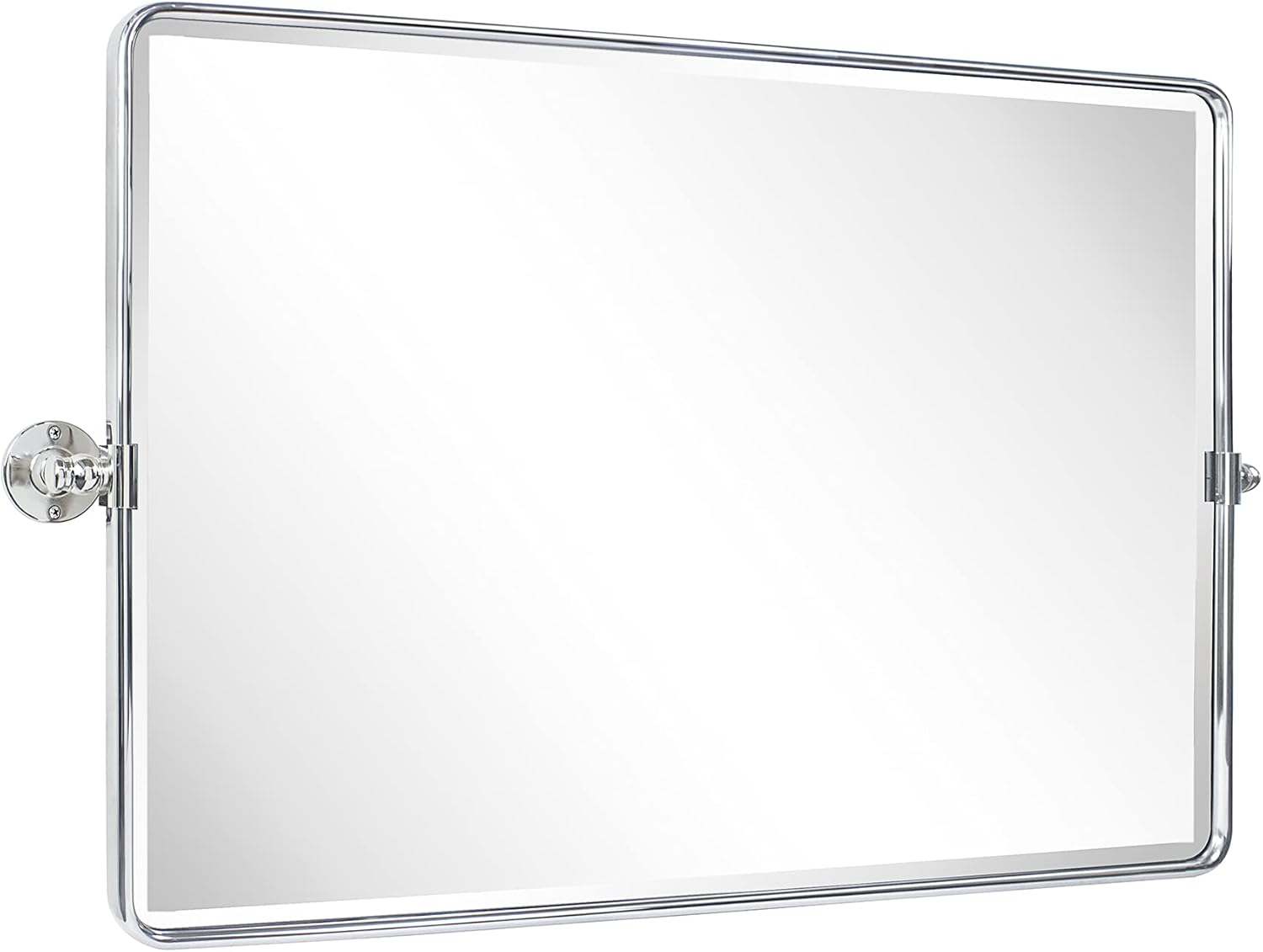 TEHOME 24 x 38'' Horizontal Farmhouse Chrome Metal Framed Pivot Rectangle Bathroom Mirror Tilting Beveled Vanity Mirrors for Wall