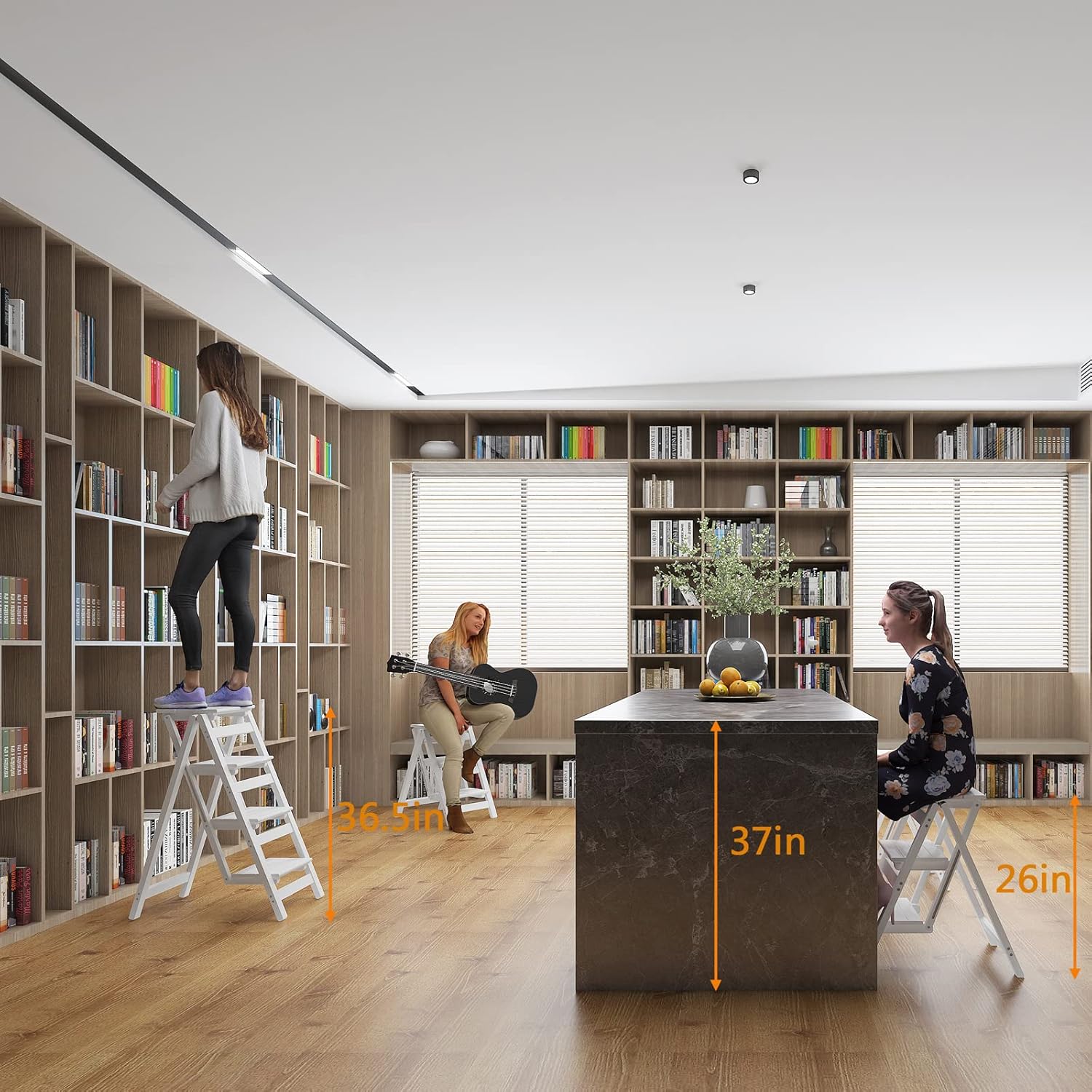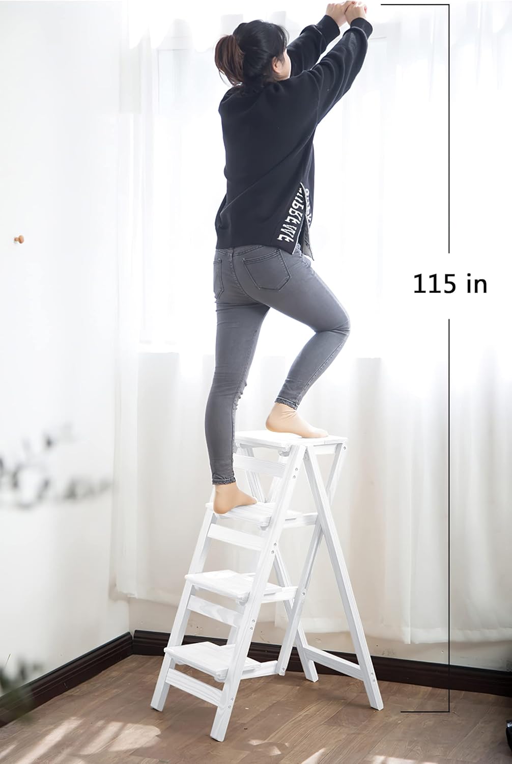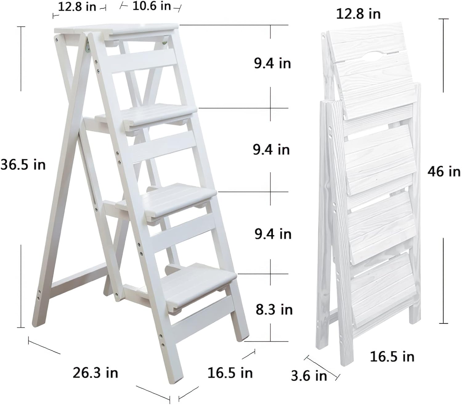 Step Stool for Adults/Step Ladder/Counter Chair, 4-Step Folding Portable Wooden Step Stool, Anti-Slip & Lightweight (White)