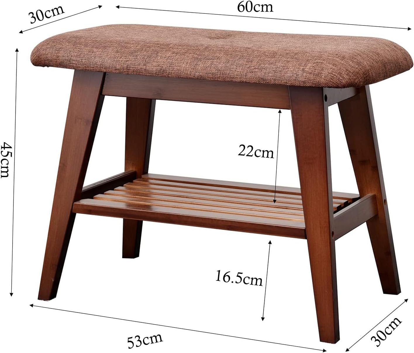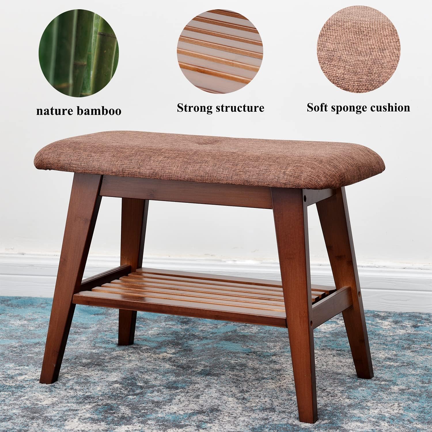 Shoe Entryway Bench, Bamboo Shoe Rack Bench, Organizer with 2 Tier Storage Simple Style Good Load Bearing, Ideal for Entryway Hallway Living Room,(Brown,23.6'')
