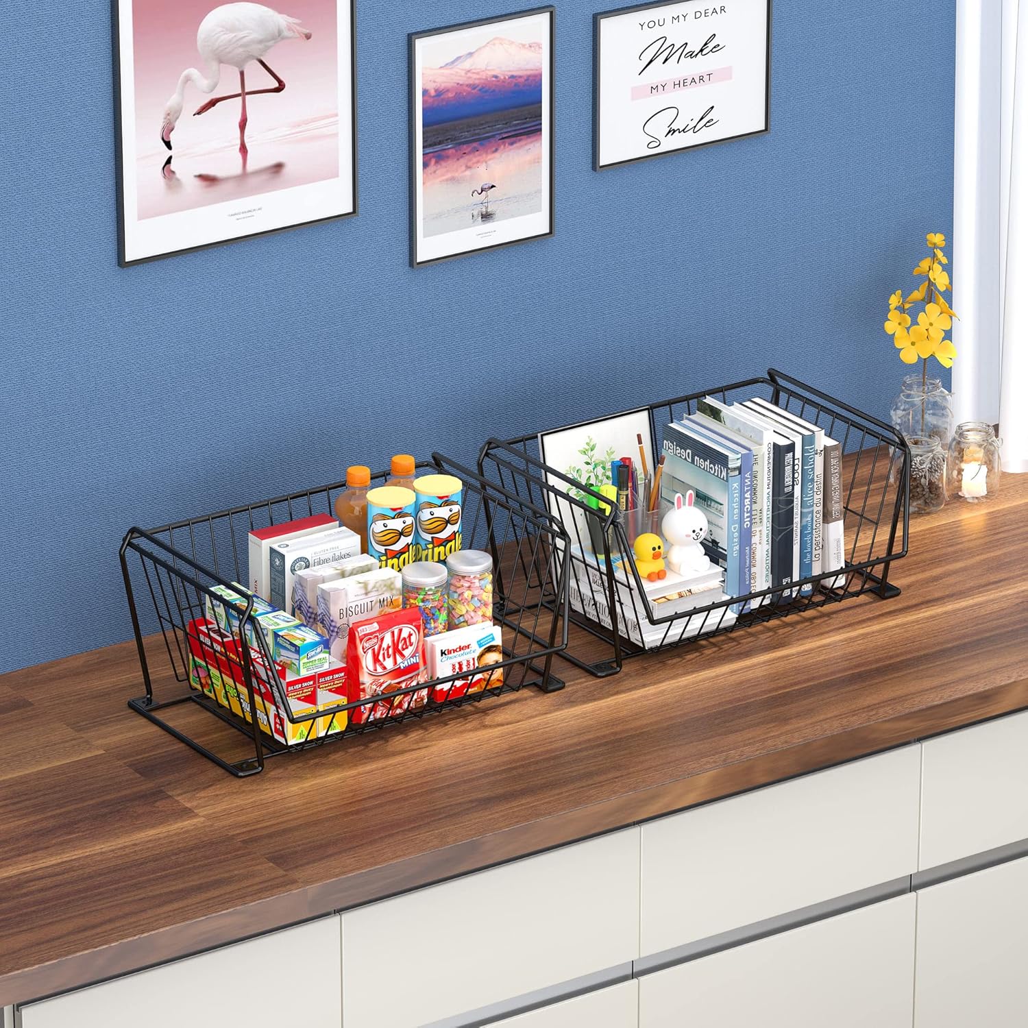 - - Patent-protected stackable storage basket bins with a stylish and multifunctional design, suitable for both floor standing and countertop use.