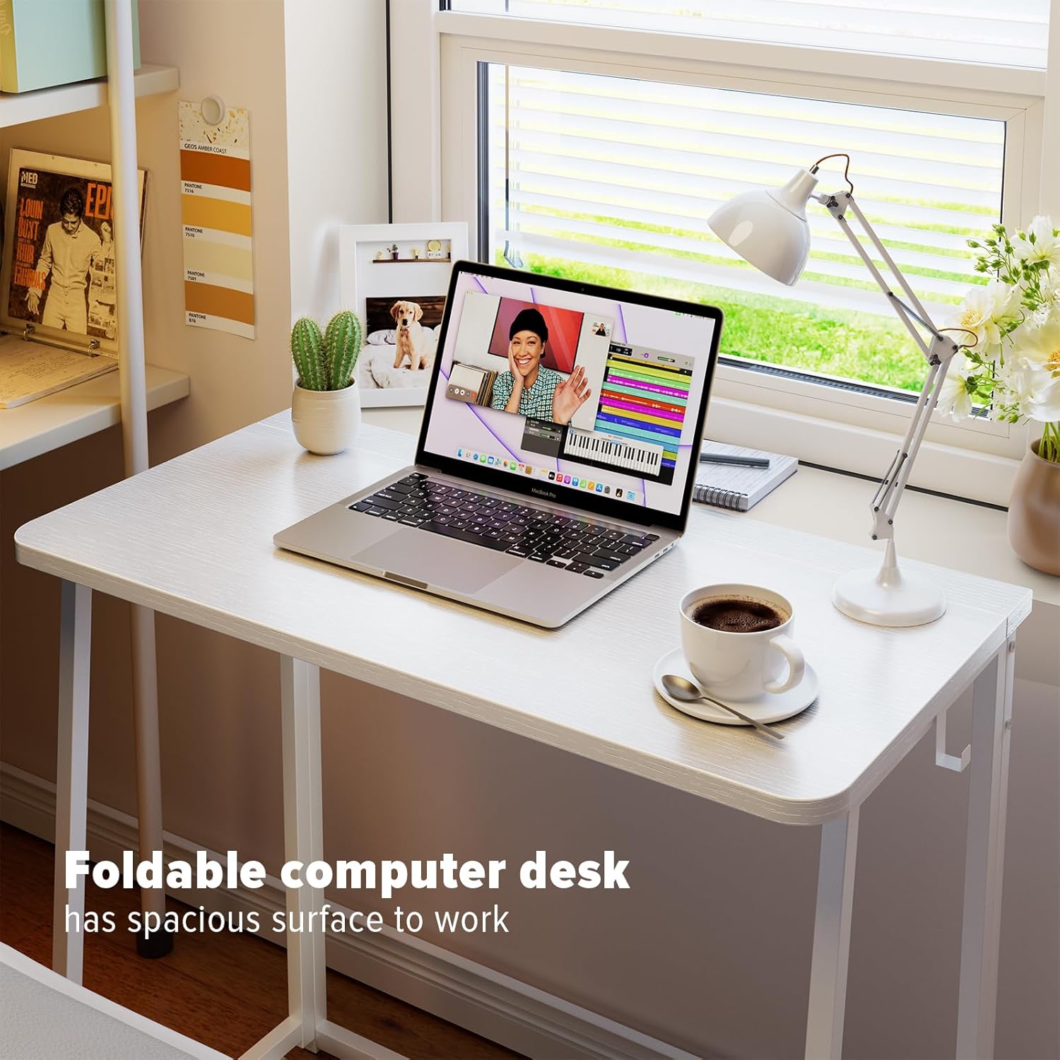WOHOMO Folding Desk, 31.5" Small Desk for Small Spaces, Easy Assemble Foldable Computer Desk for Laptop, Mini Portable Working Table Narrow Wooden Writing Workstation for Home Office, White