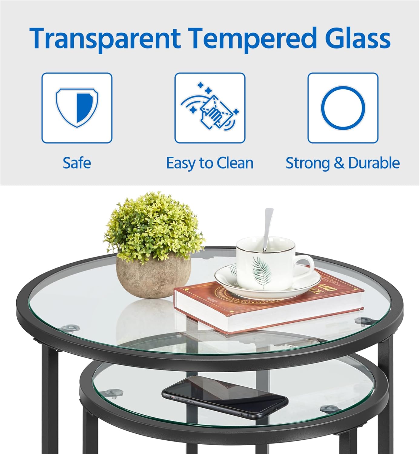 - Sturdy & Safe: Constructed with a powder-coated iron frame, durable tempered glass tabletop, and adjustable foot pads, these elegant accent tables ensure durability and stability for long-time service