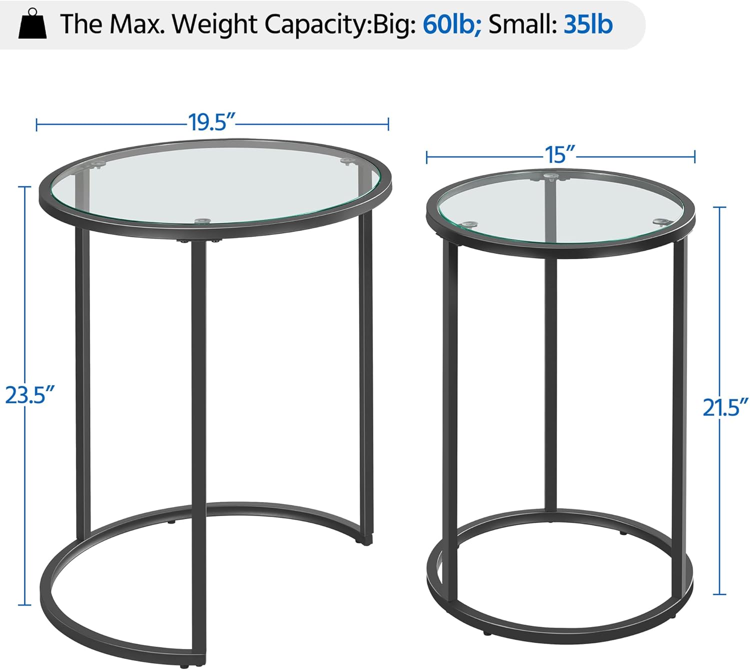- Small Space Friendly: Measuring only 20″ L, 20″ W for the tall table and 15″ L, 15″ W for the short table, this set is tailored for small living rooms or apartments. The compact size and round design effortlessly complement sofas or accent chairs