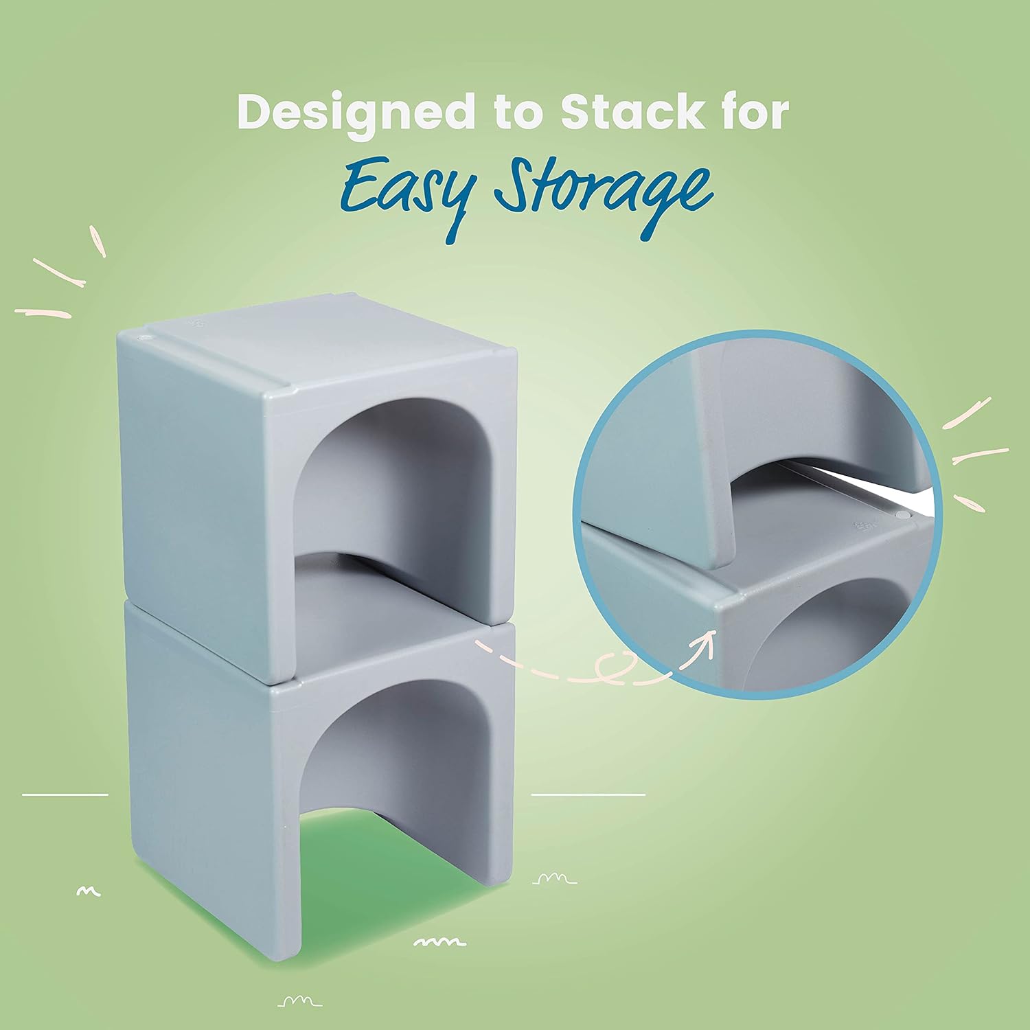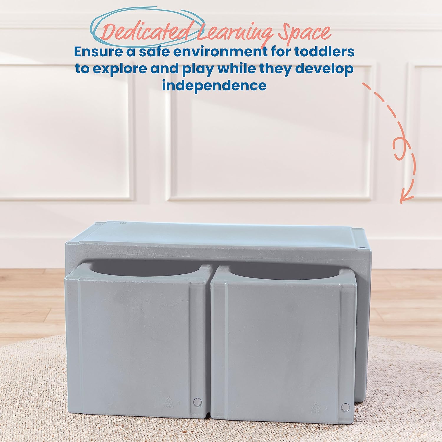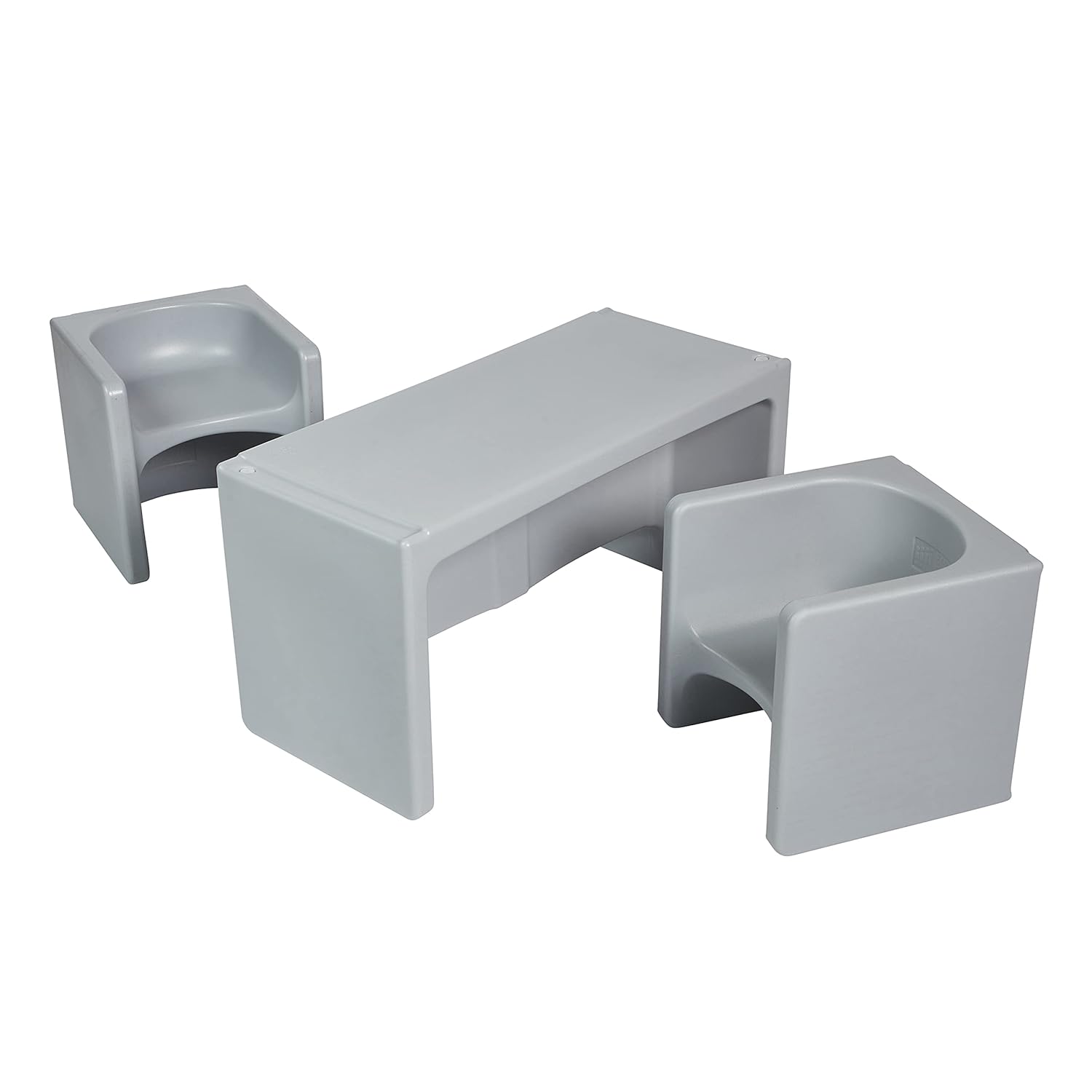 ECR4Kids Tri-Me Table and Cube Chair Set, Multipurpose Furniture, Light Grey, 3-Piece