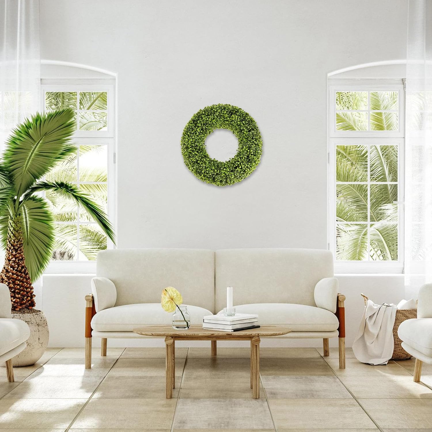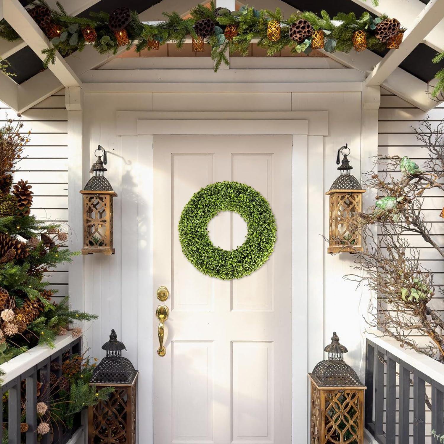 - 【Alll Year Decor】 This eye catching green wreath is made with highest quality permanent/artificial material of boxwood leaves, it is more durable than real plants. This wreath is perfect all year long spring, summer, fall and winter.