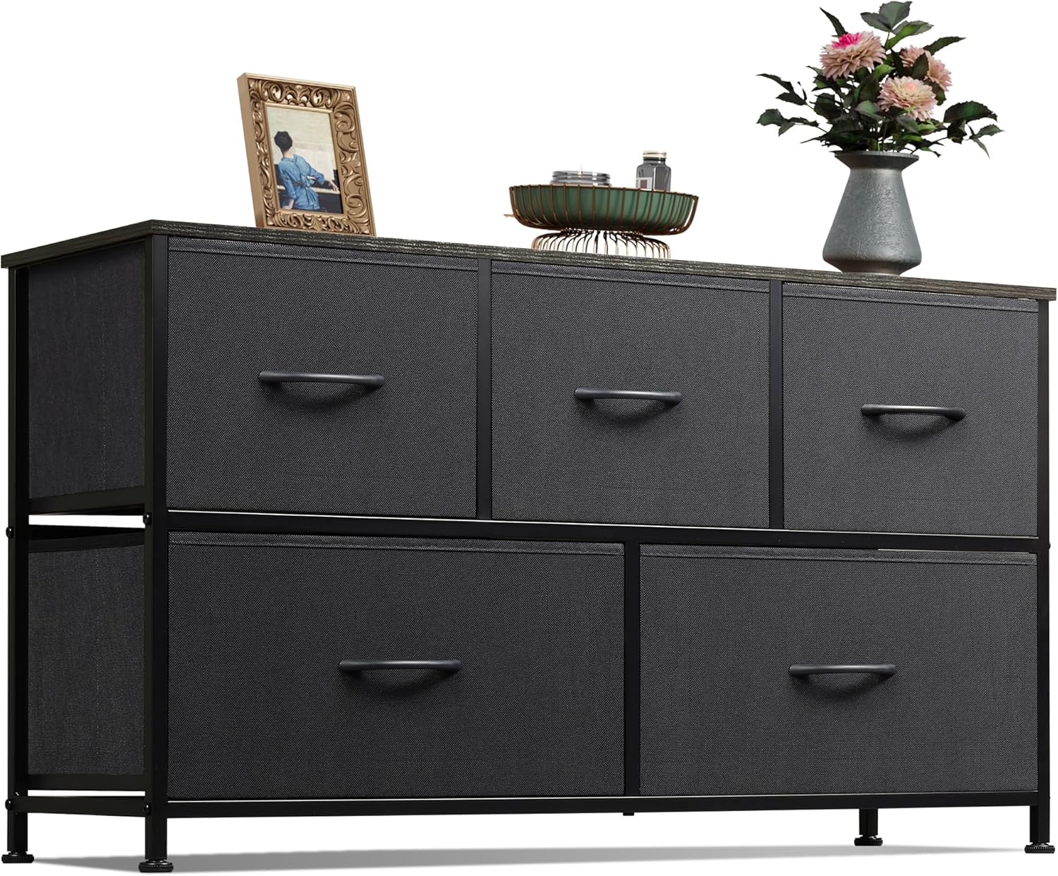 WLIVE Dresser for Bedroom with 5 Drawers, Wide Chest of Drawers, Fabric Dresser, Storage Organizer Unit with Fabric Bins for Closet, Living Room, Hallway, Charcoal Black