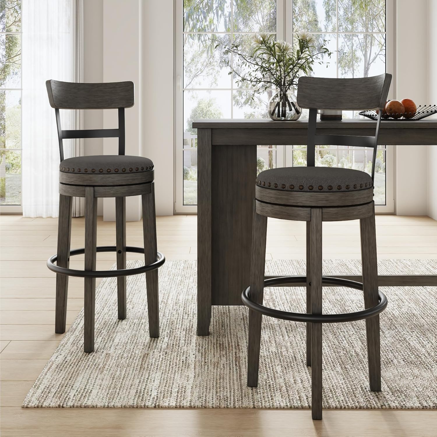- RUSTIC FLAIR: Distinctive features such as the foam cushioned seat, swivel and nailhead trim all come together in a gorgeous antiqued gray wash finish to go with rustic or urban decor and accessories