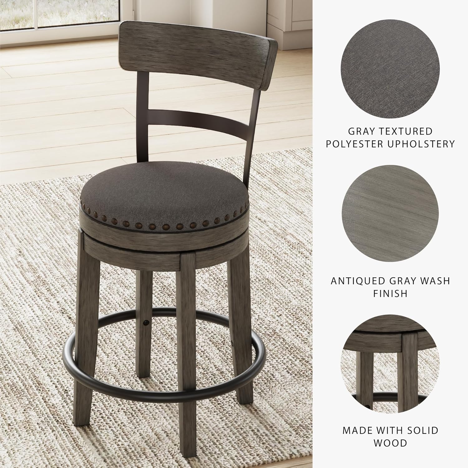 Signature Design by Ashley Caitbrook 24" Farmhouse Counter Height Upholstered Swivel Barstool, Gray