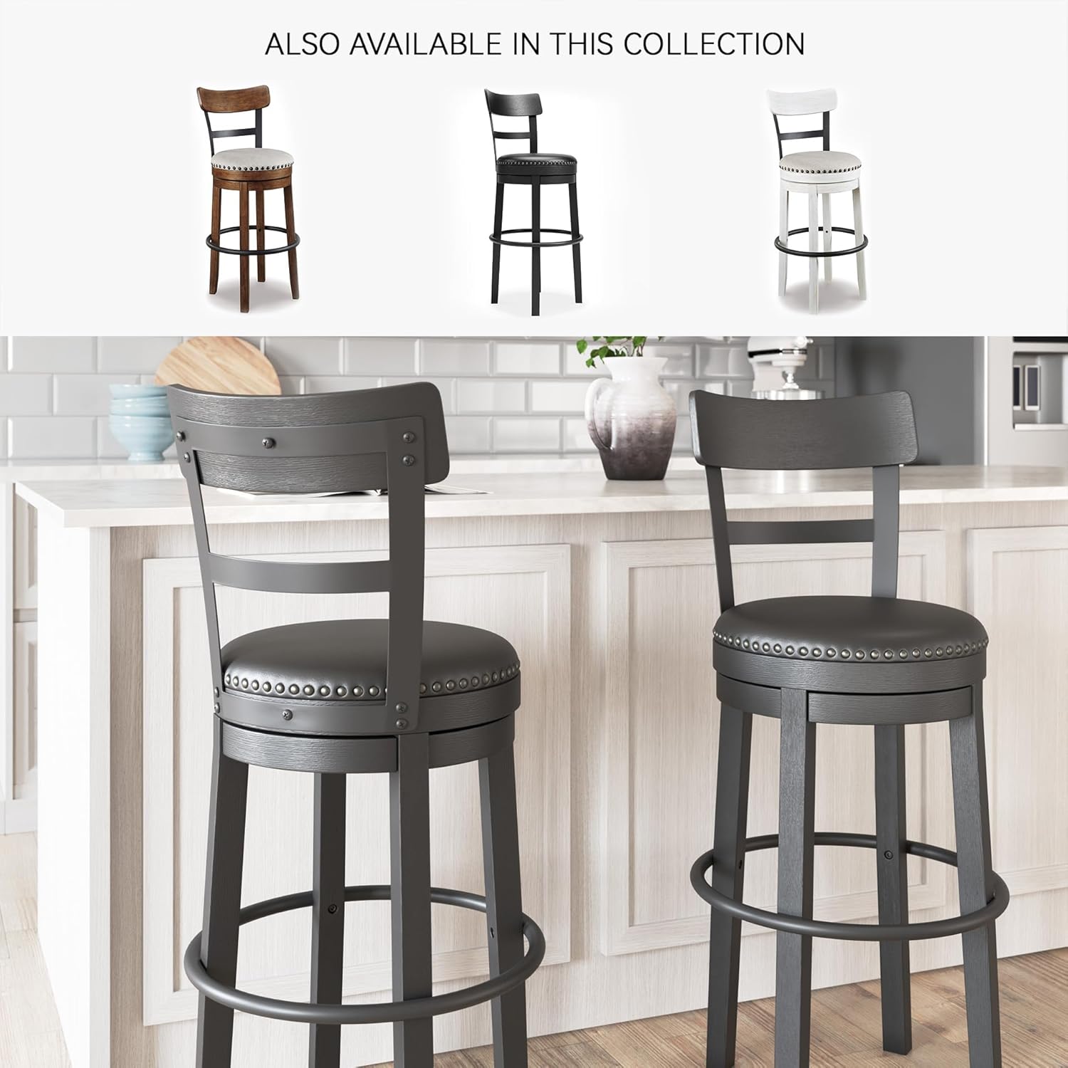 Signature Design by Ashley Valebeck 30.38" Casual Pub Height Upholstered Swivel Barstool, Black