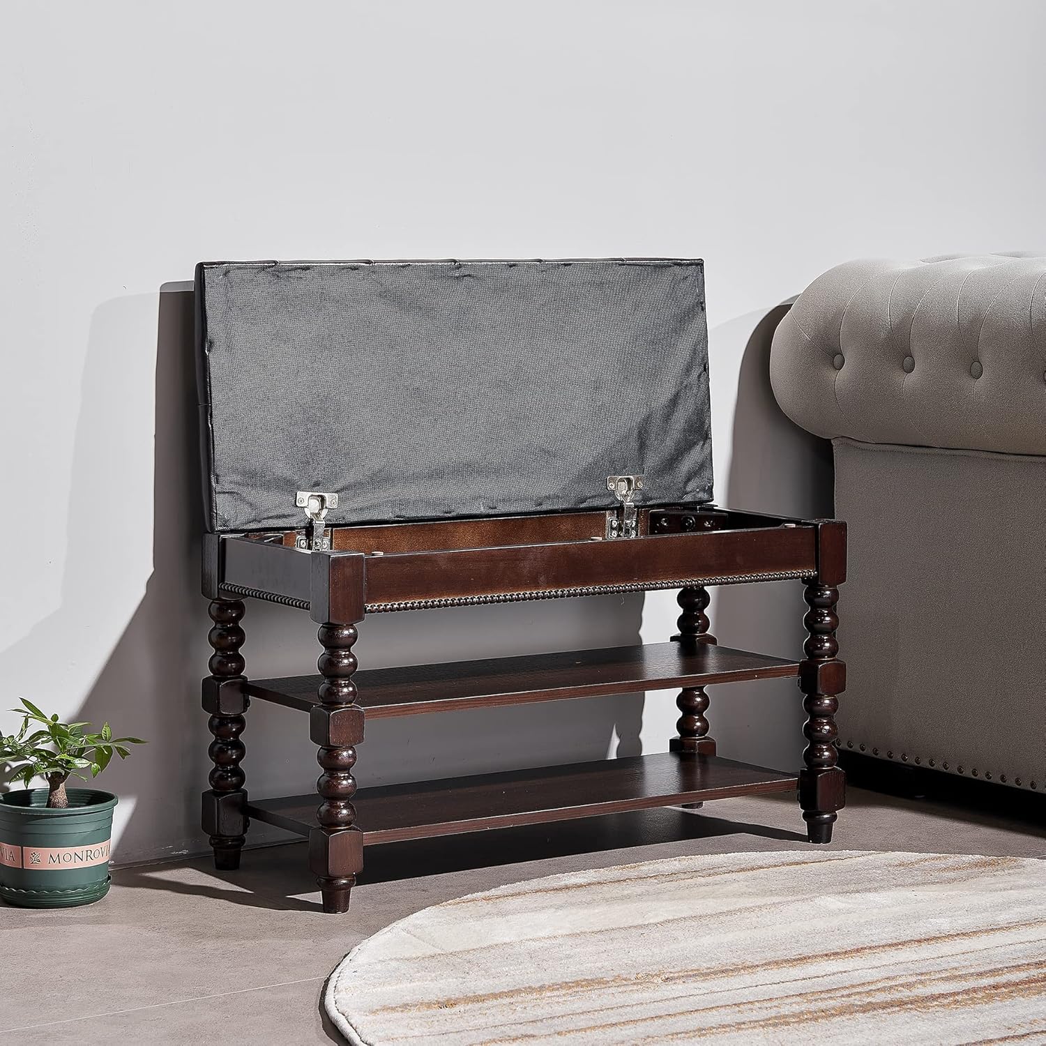 - Classic Appearance: The exquisite entryway bench, generous and classic design, can be decorated for your home. If you are looking for a entryway shoe organizer, this is your best choice.