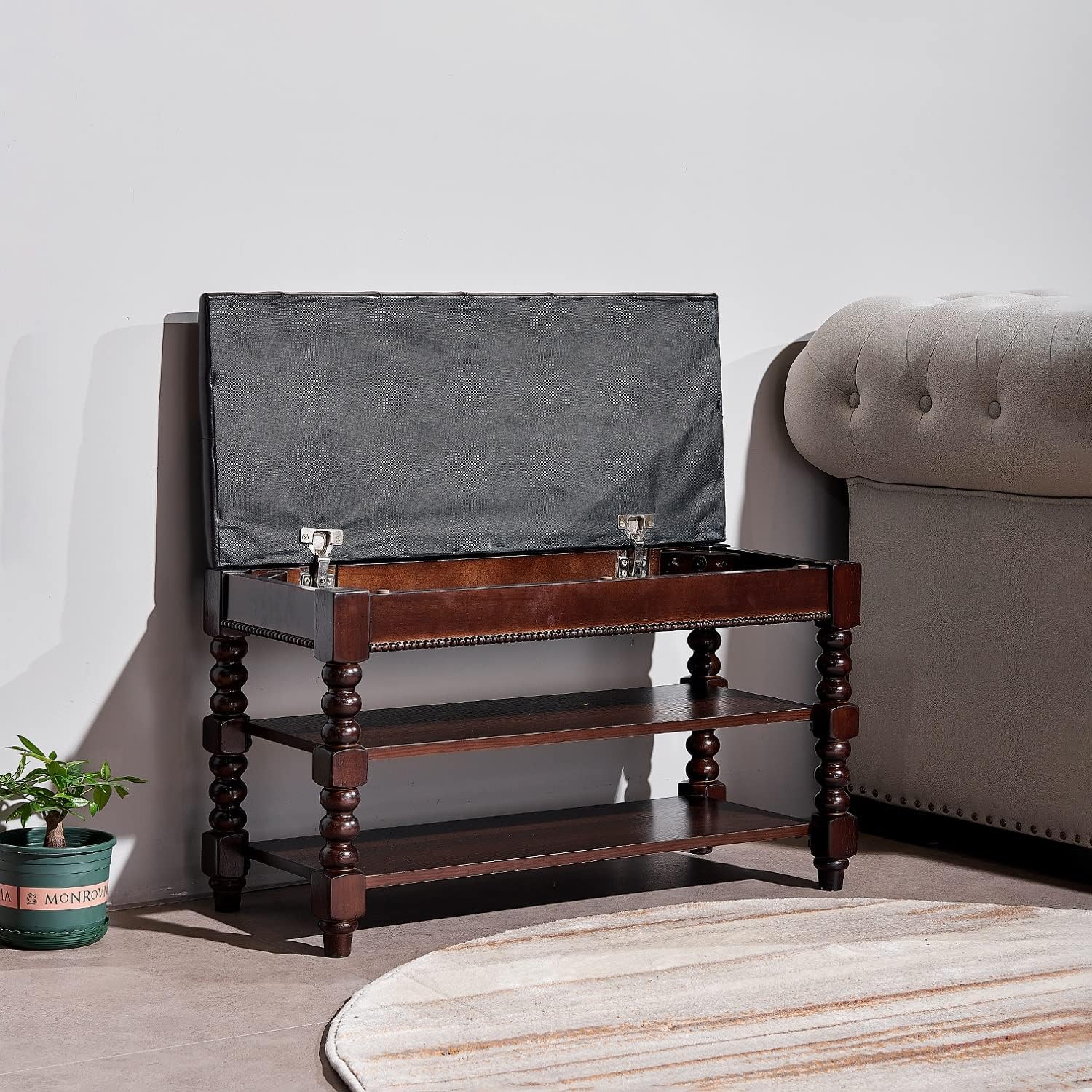 - Classic Appearance: The exquisite entryway bench, generous and classic design, can be decorated for your home. If you are looking for a entryway shoe organizer, this is your best choice.