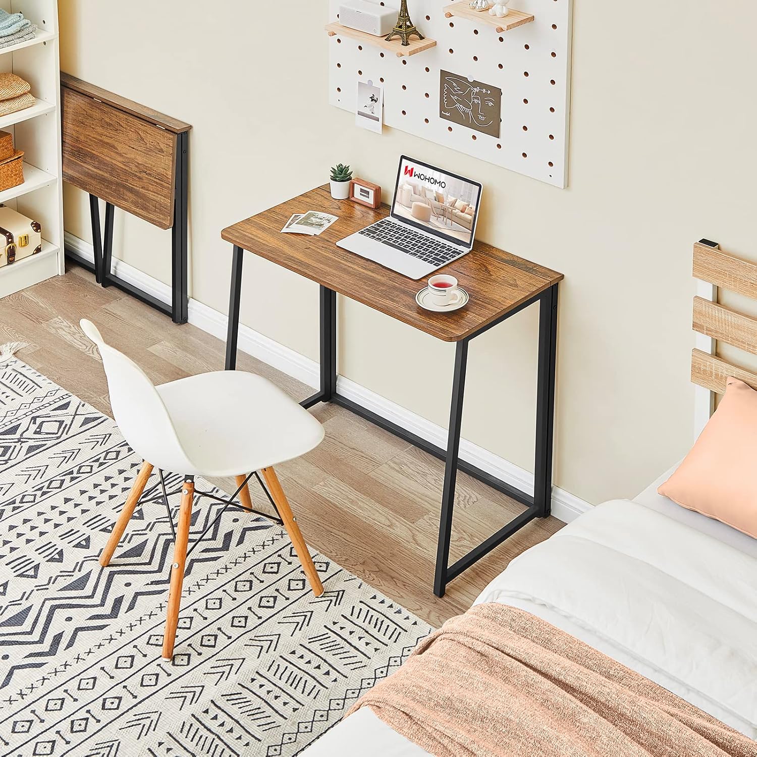 WOHOMO Folding Desk for Small Spaces, 31.5 Inch Foldable Computer Desks, Small Desk for Home Office, Study, Bedroom, Space Saving Writing Work Computer Table, Easy to Fold, Rustic Walnut