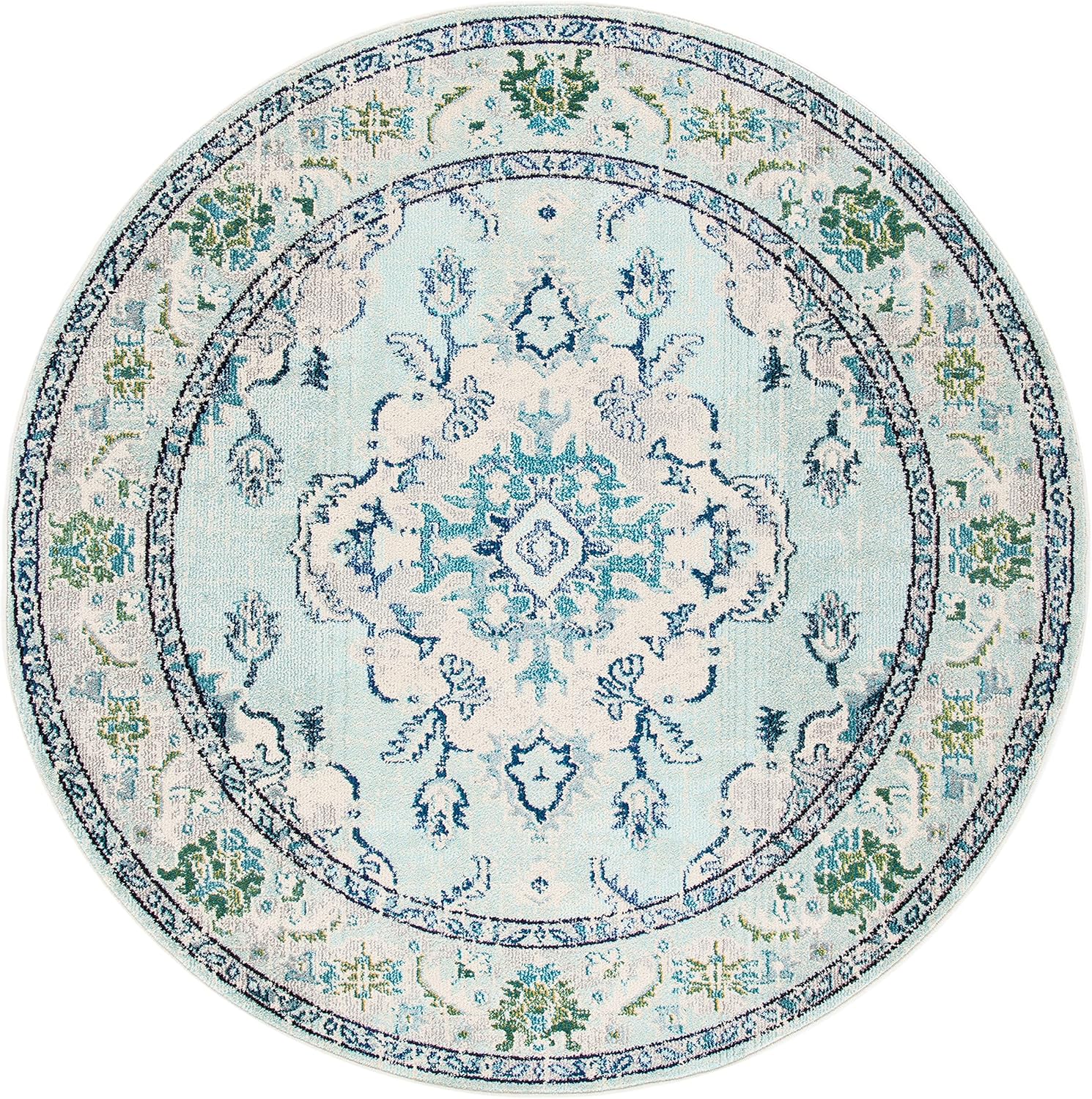 SAFAVIEH Monaco Collection Area Rug - 6'7" Round, Light Blue & Ivory, Boho Chic Medallion Distressed Design, Non-Shedding & Easy Care, Ideal for High Traffic Areas in Living Room, Bedroom (MNC243K)