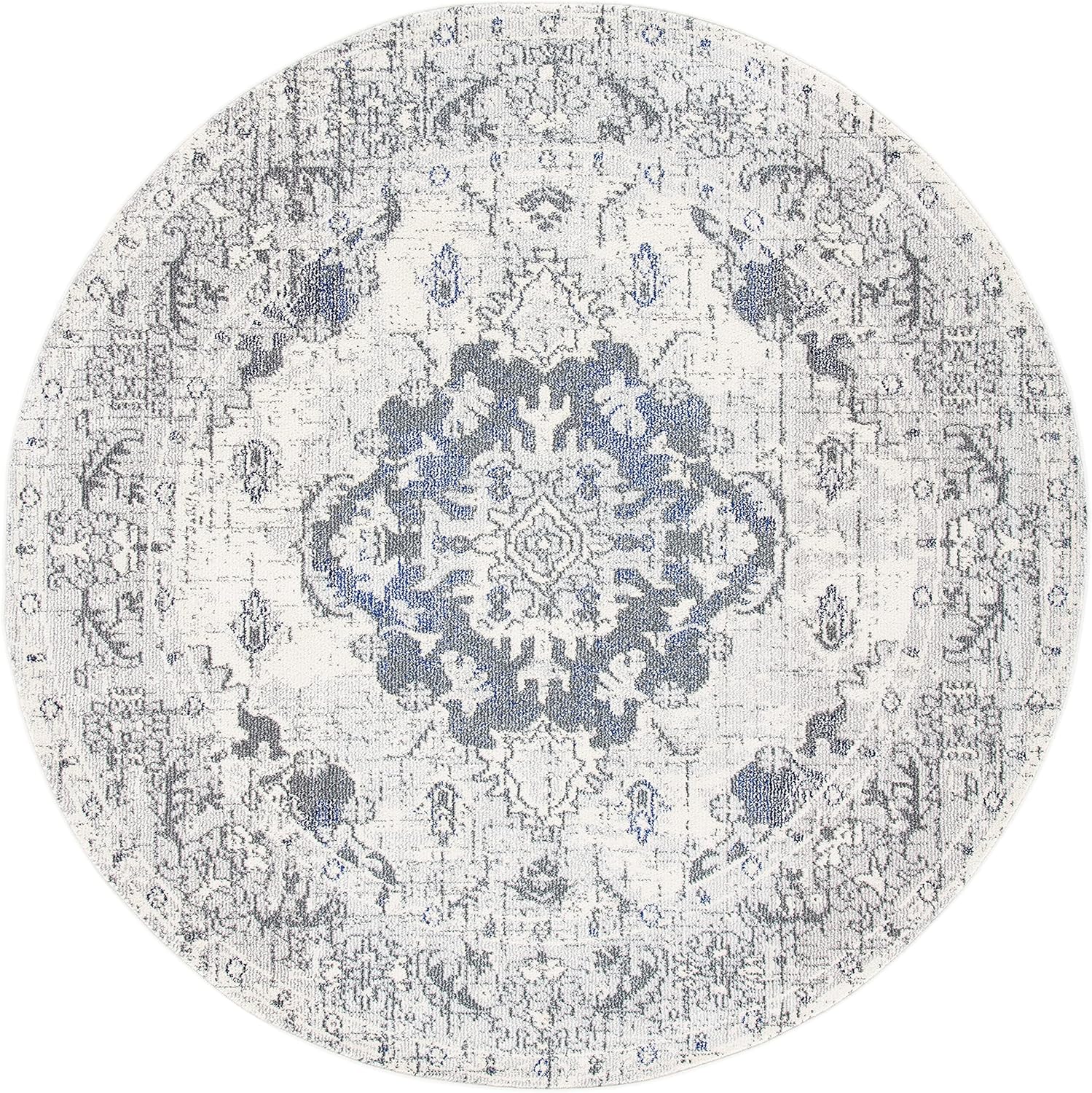 SAFAVIEH Monaco Collection Area Rug - 6'7" Round, Ivory & Grey, Boho Chic Medallion Distressed Design, Non-Shedding & Easy Care, Ideal for High Traffic Areas in Living Room, Bedroom (MNC243B)