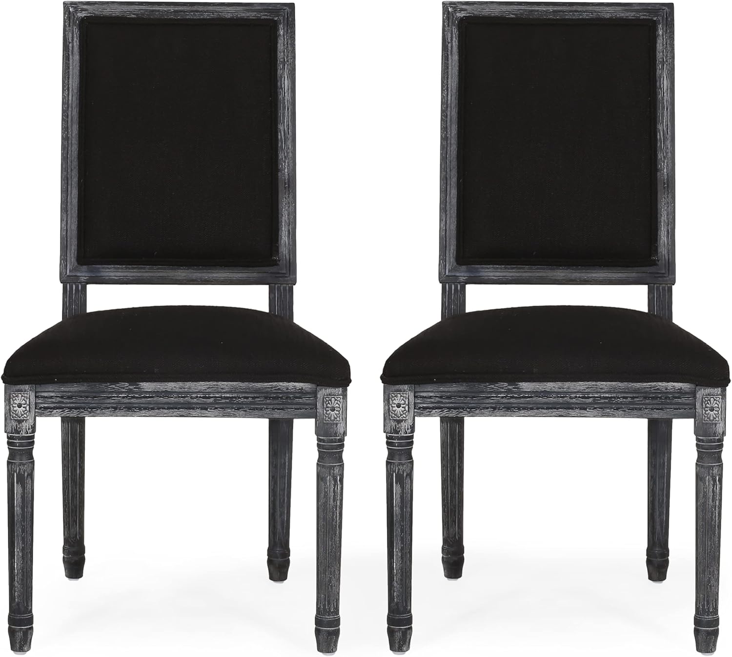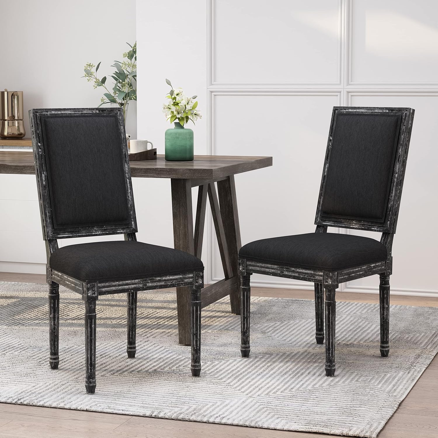 Christopher Knight Home Regina French Country Dining Chairs Set of 2, Wooden Dining Room Chair, High Back Kitchen Side Chair, Fabric Upholstered Armless Extra Seat, Black and Gray