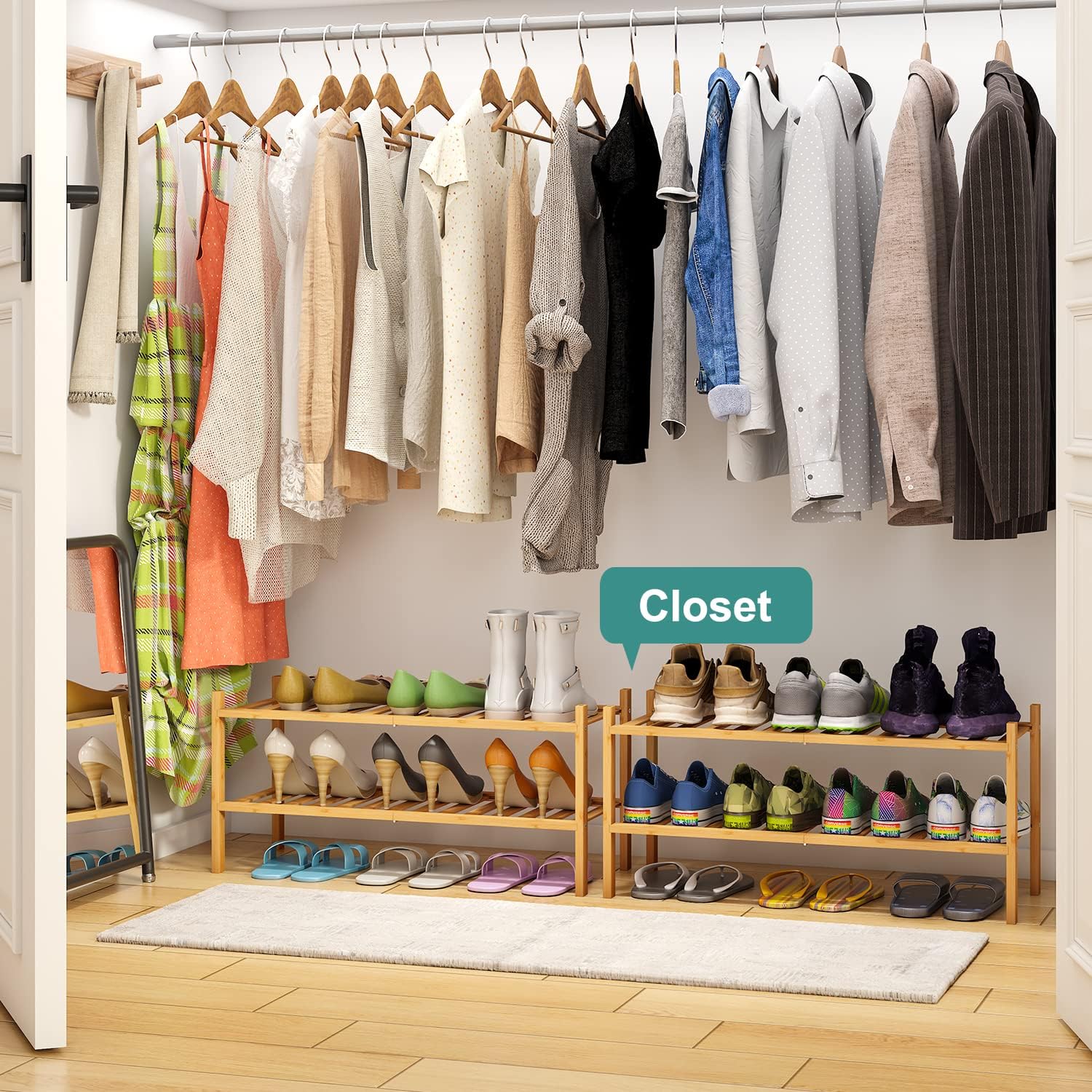 2-Tier Bamboo Shoe Rack for Entryway, Bamboo Wood Shoe Organizer for Hallway Closet, Free Standing Shoe Racks for Indoor Outdoor