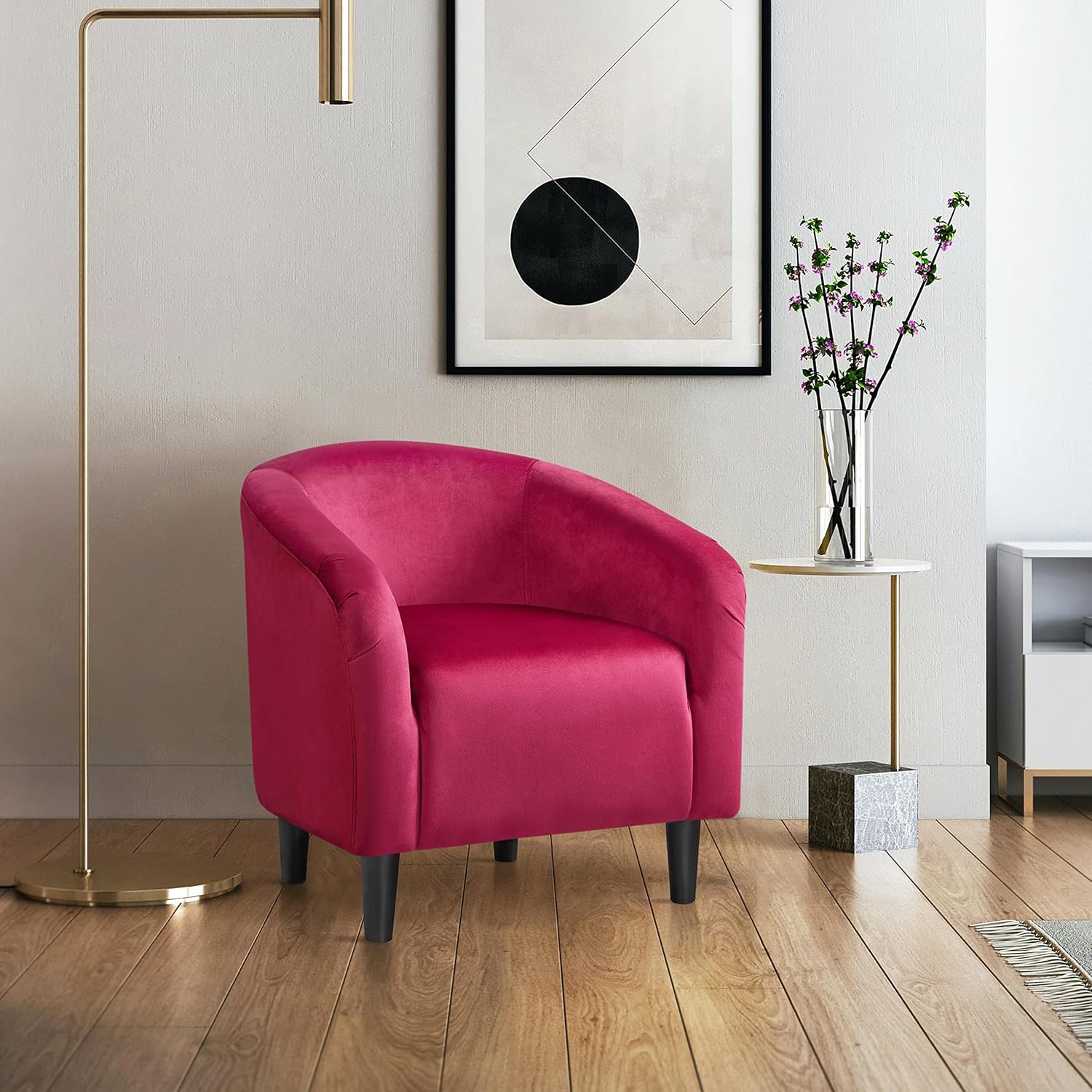 Yaheetech Club Chair, Velvet Accent Chair Upholstered Barrel Chair Sitting Chair with Armrest and Low Back for Living Room Bedroom, Rose Red