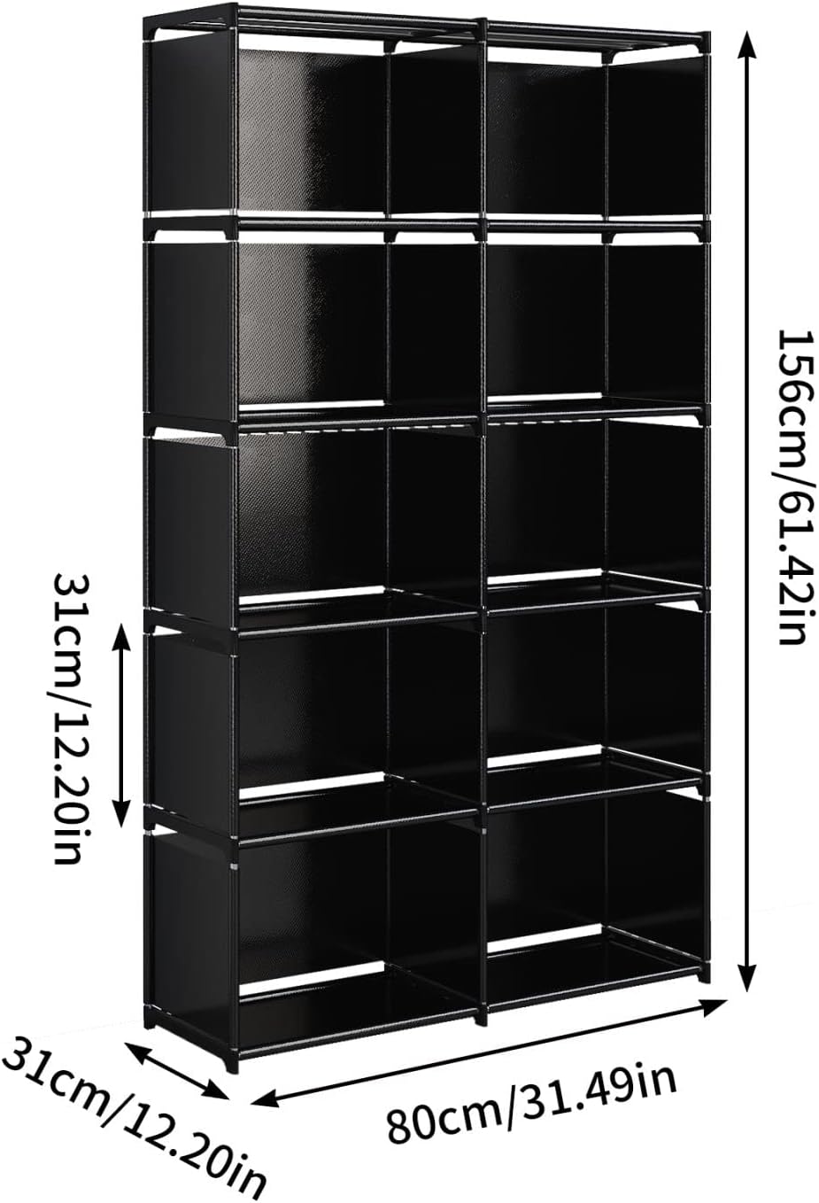 - 【LARGE CAPACITY, STRONG LOAD-BEARING】-- It has 10 grids, the size of each grid is 15.75 x 11.81"/ 40 x 30cm. It has a great storage capacity to store your belongings.The shelf has a strong load-bearing capacity because each layer is supported by four steel pipes.There is an enclosure cloth at the back of the shelf, which can prevent objects from falling from the back, and also can block dust.