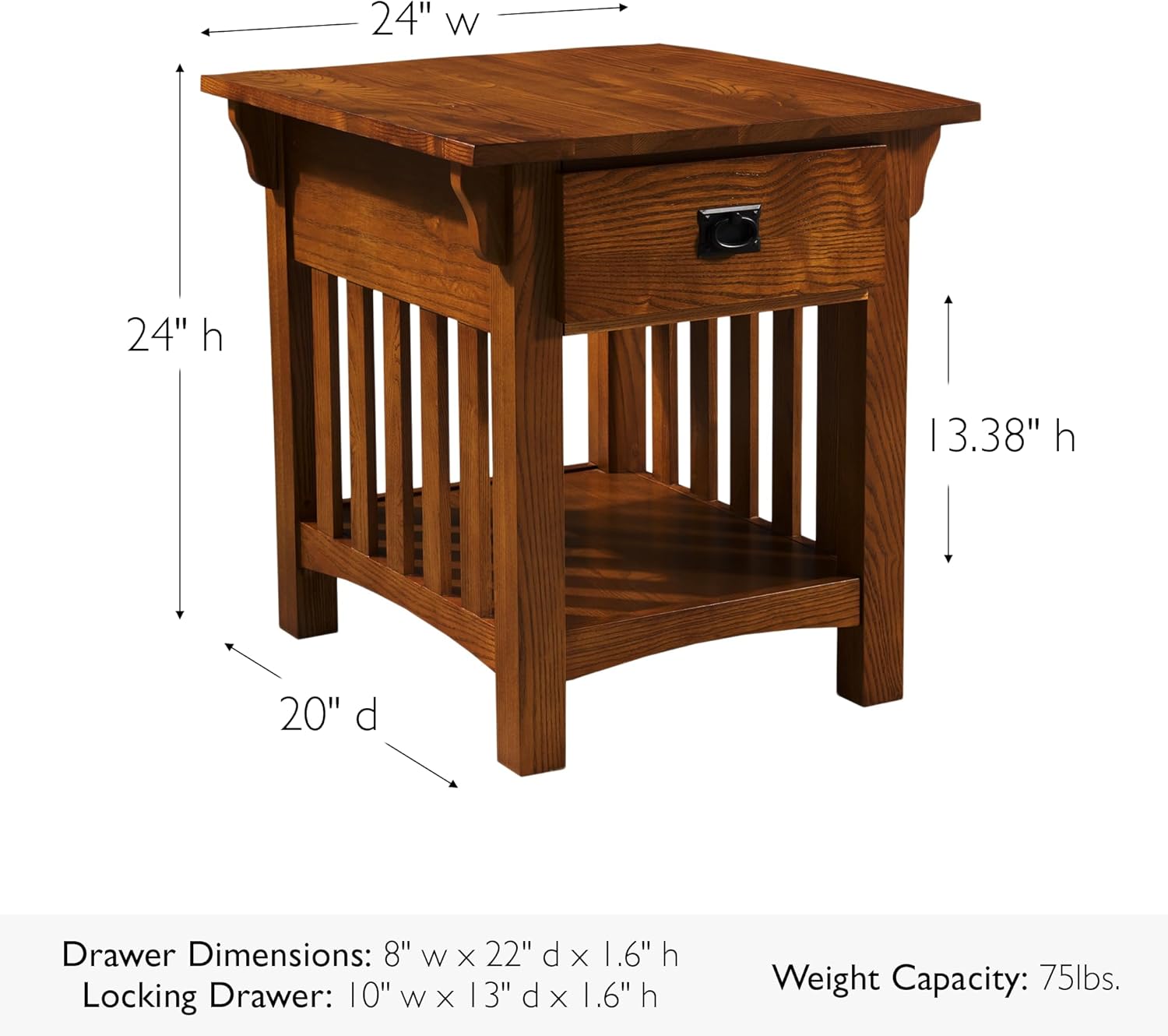Leick Home Mission End Table, Solid Wood, 1 Storage Drawer, Additional Secret Compartment, Bottom Display Shelf, Easy-Assembly, Medium Oak, 20 in L x 24 in W x 24 in H, 8222-SC