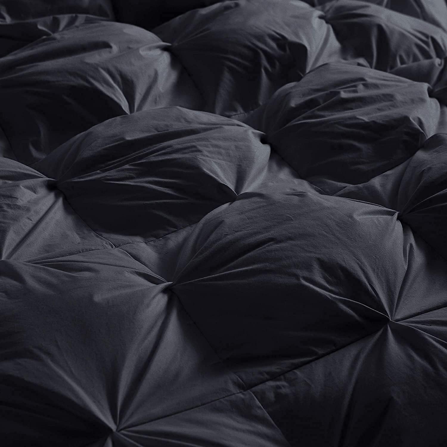 - UNIQUE BLACK PINCH PLEAT design brings elegant style and timeless good looks. Luxury down feather fiber comforter is soft, fluffy, warm, breathable, noiseless, medium weight for year-round comfort.